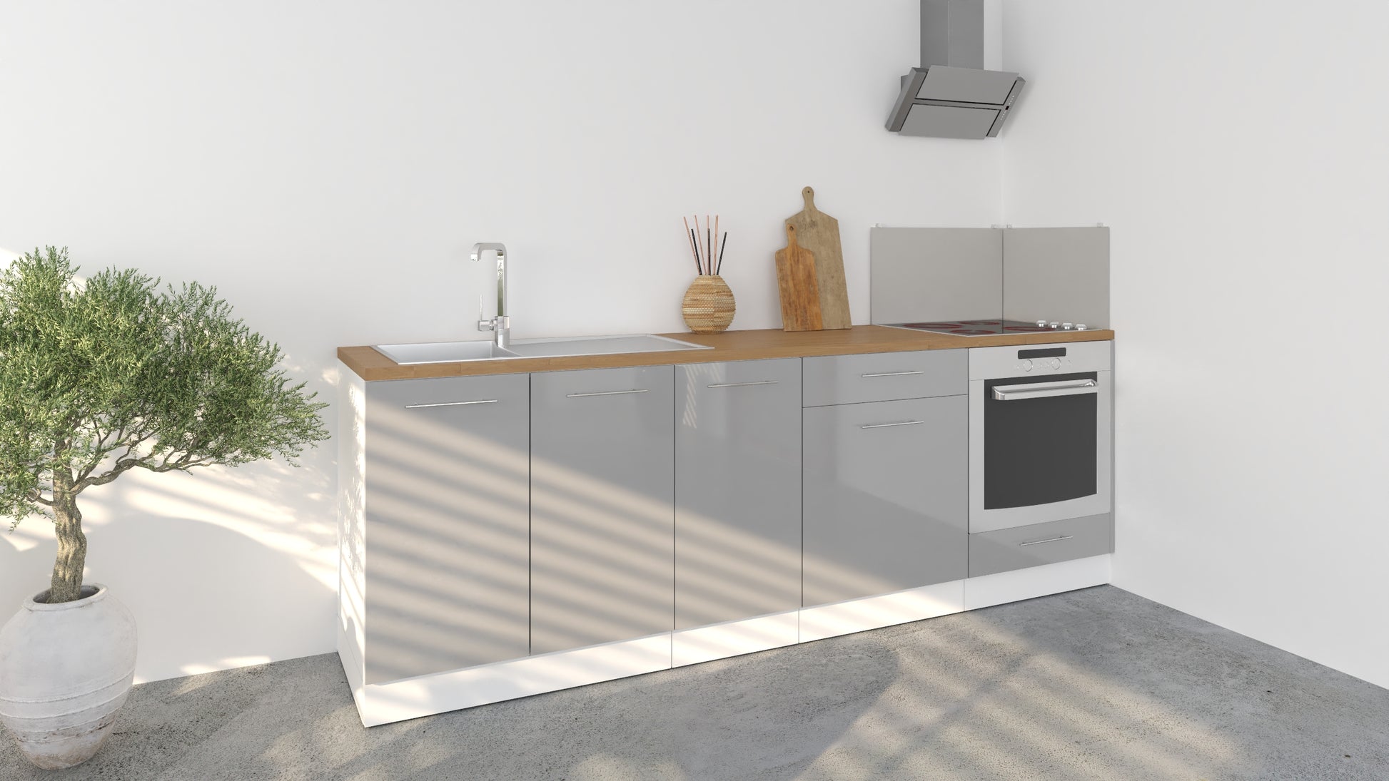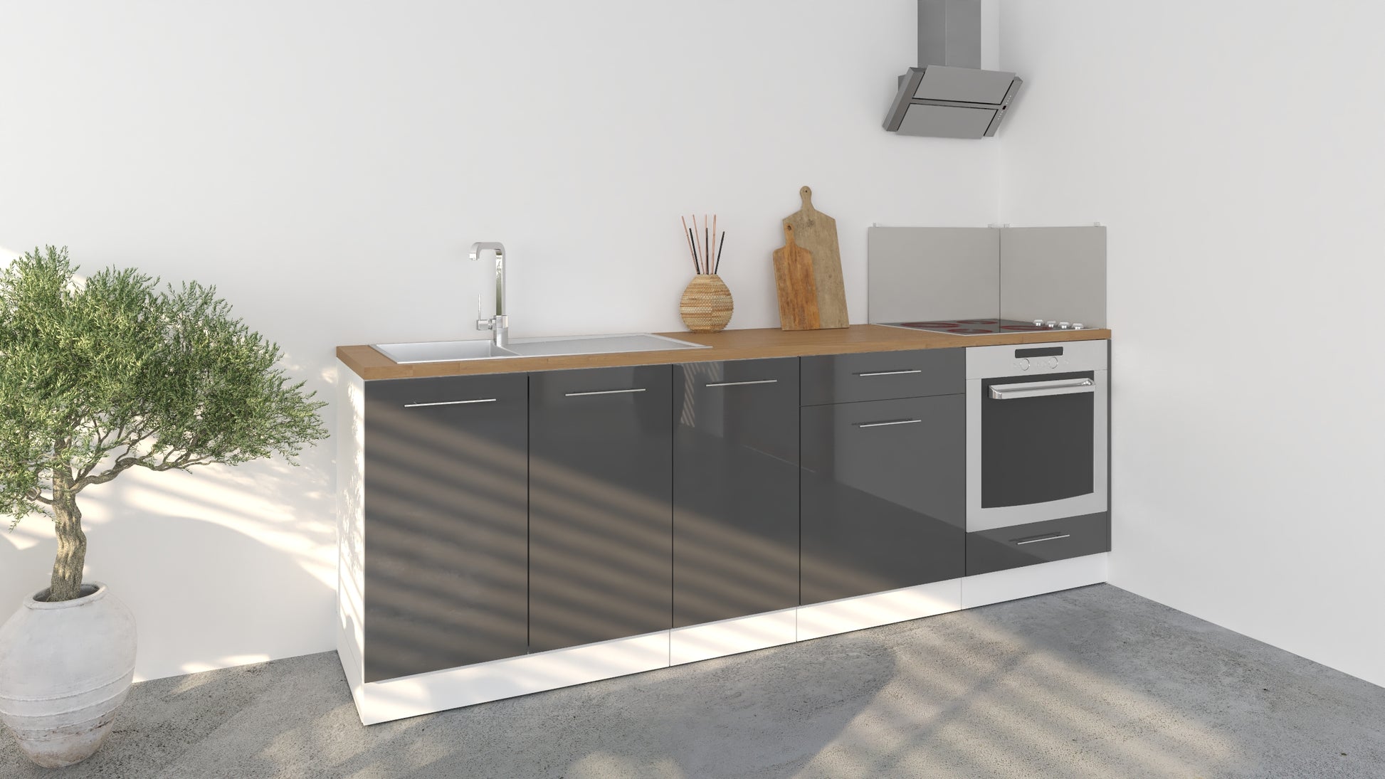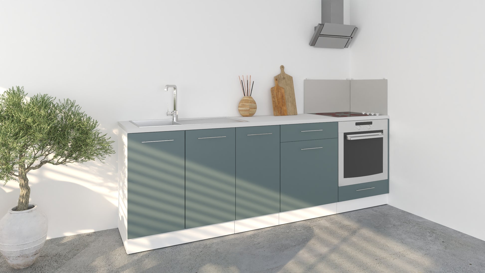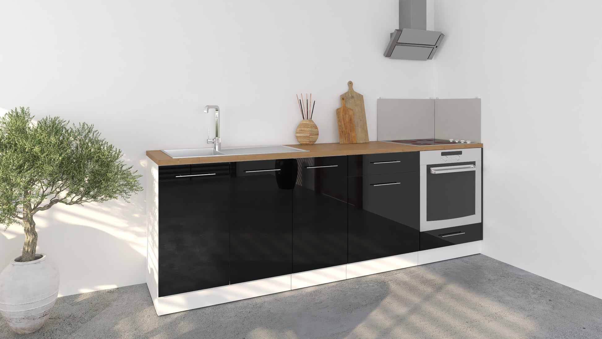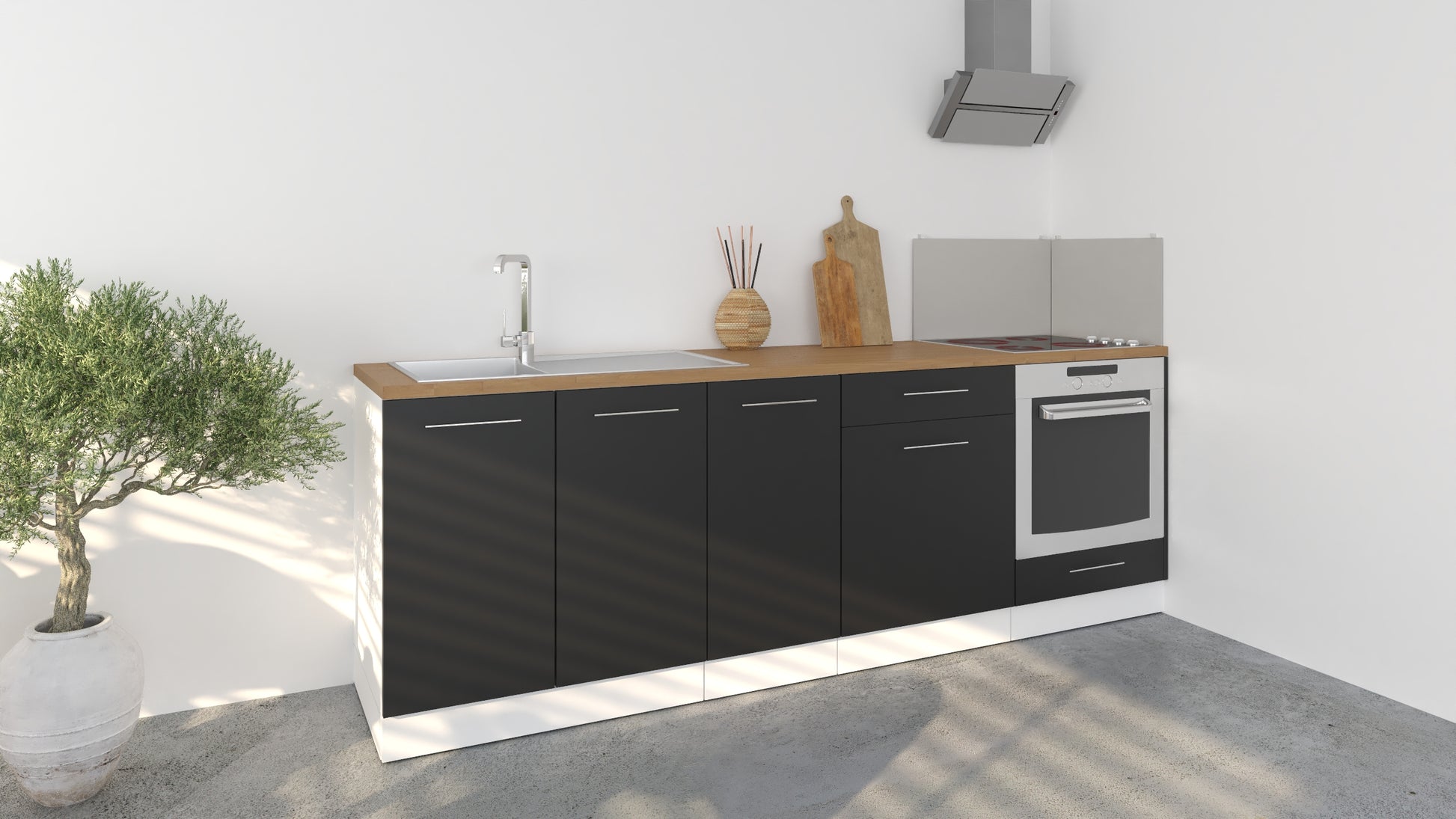 Notre cuisine complète Linéaire 240 - BAS est composée de 4 meubles: