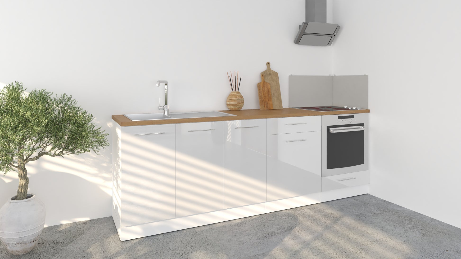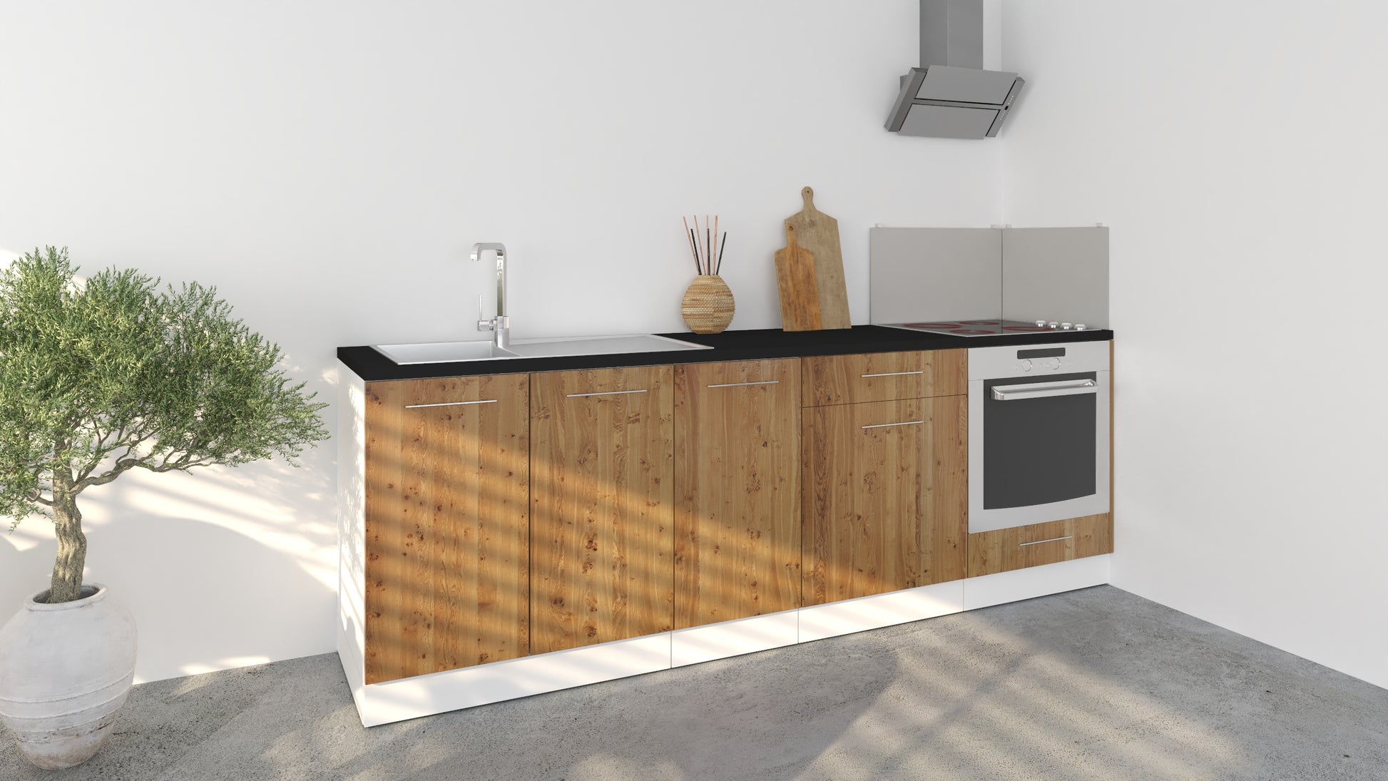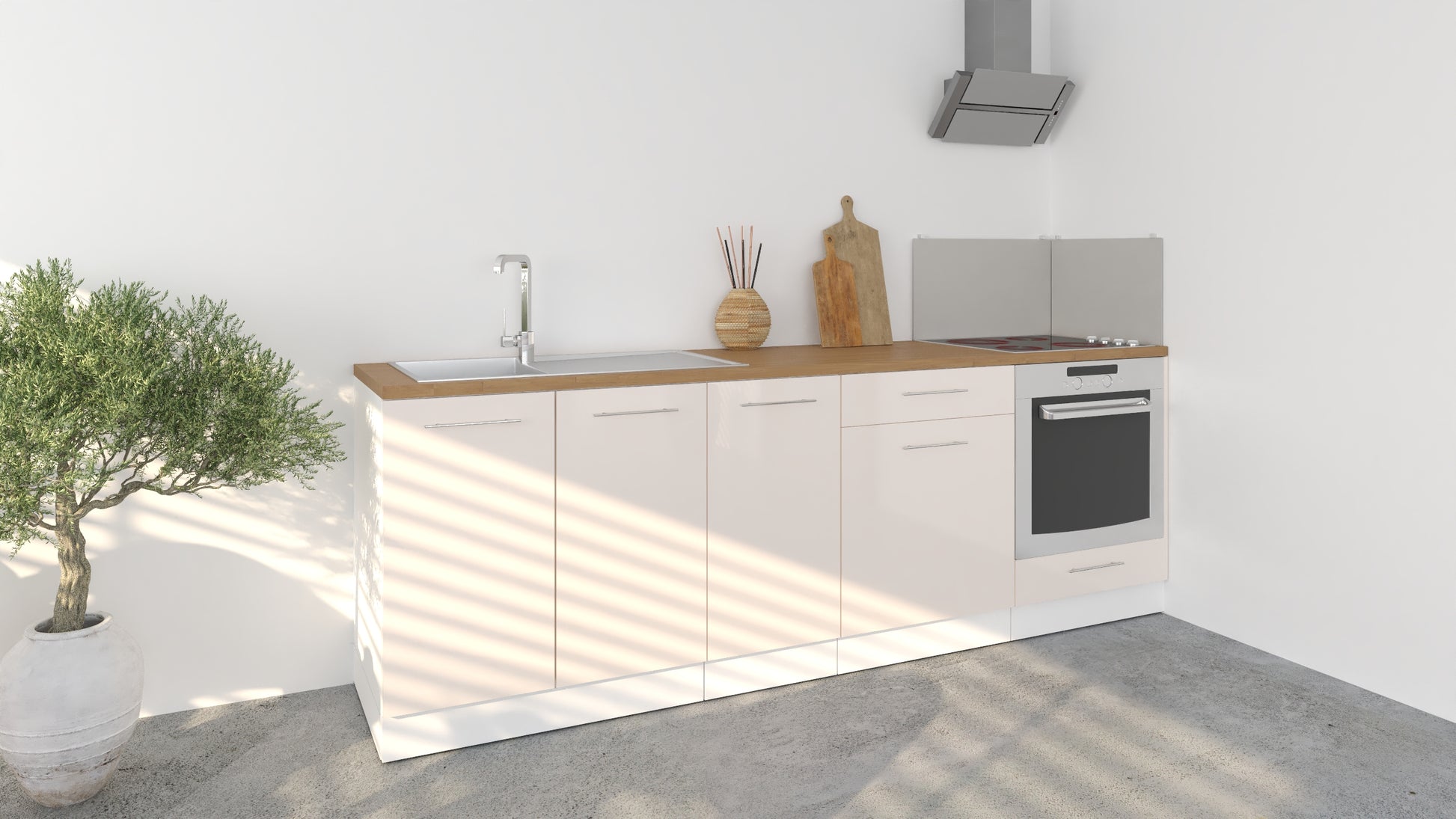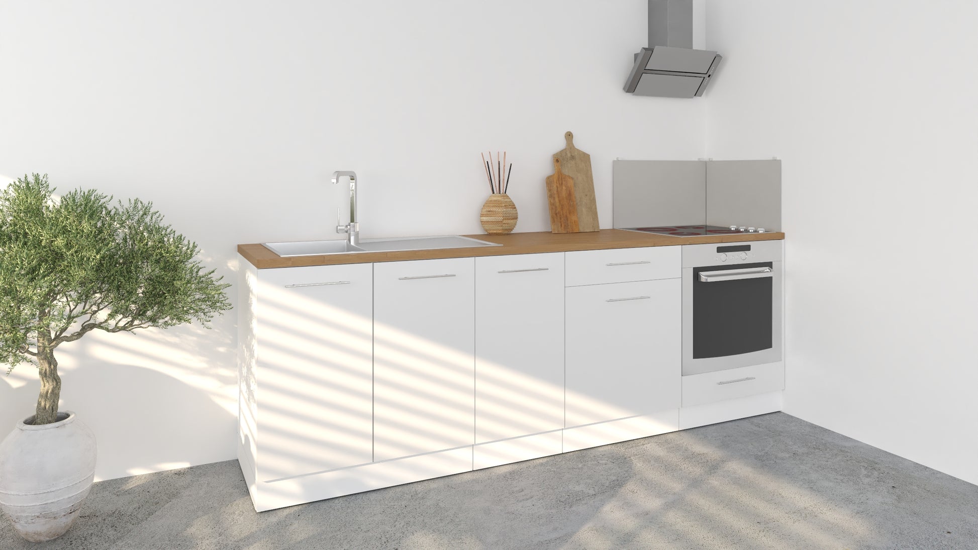 Notre cuisine complète Linéaire 240 - BAS est composée de 4 meubles: