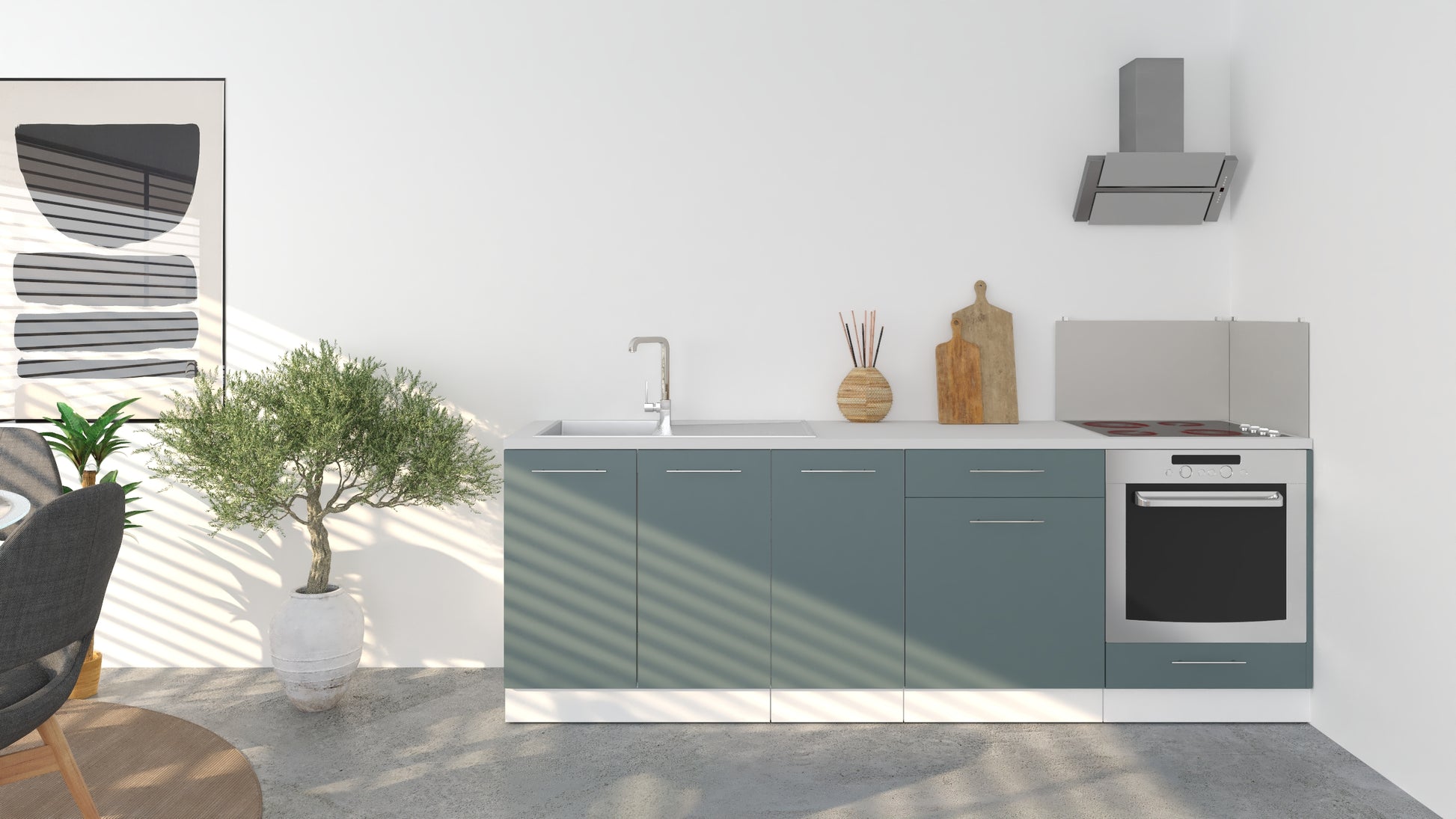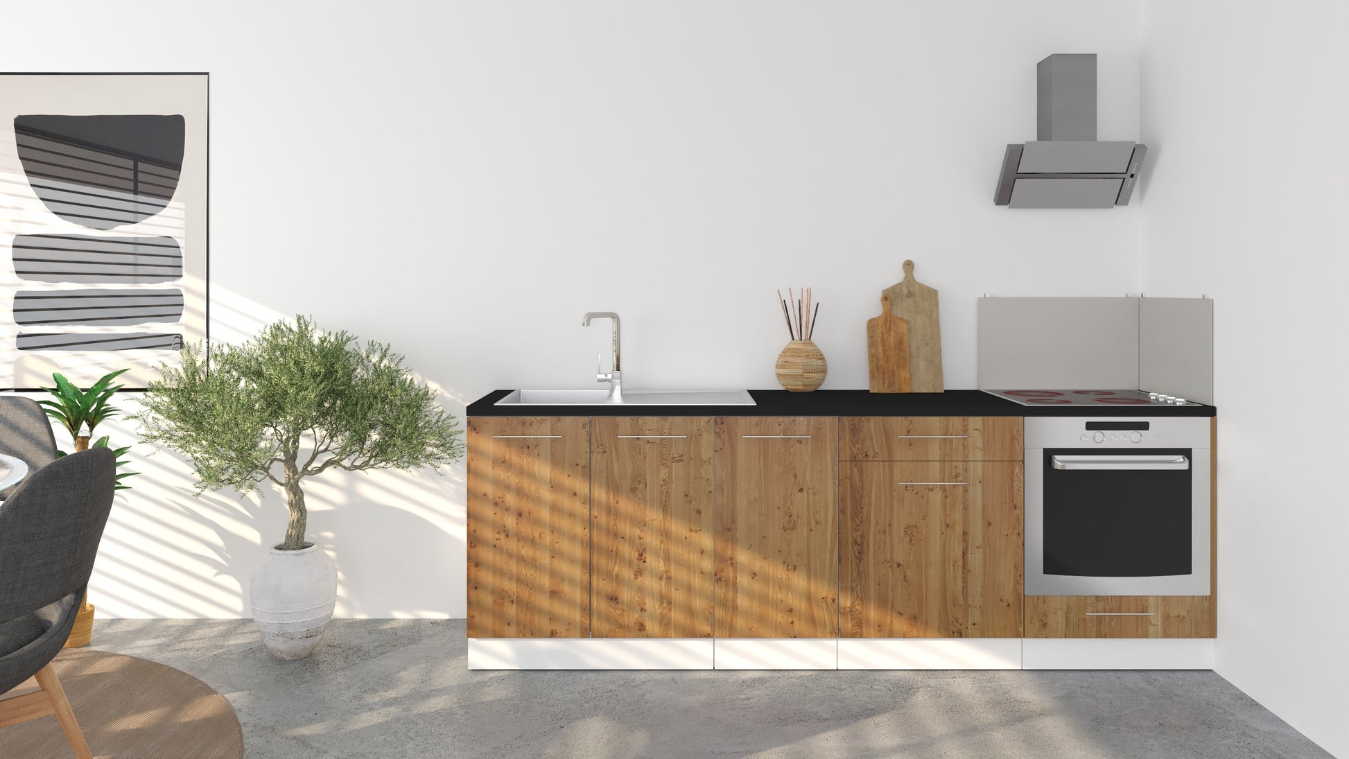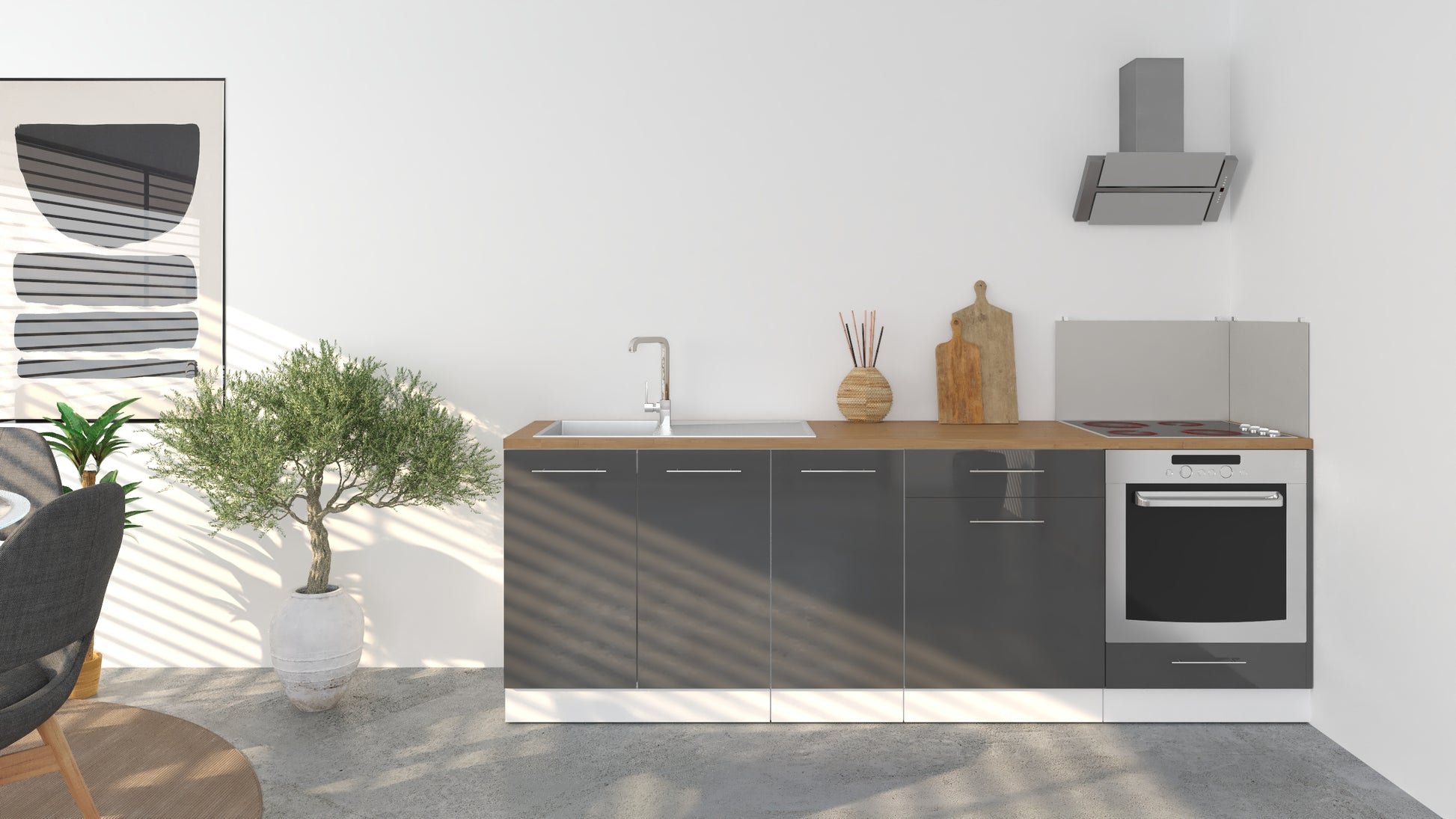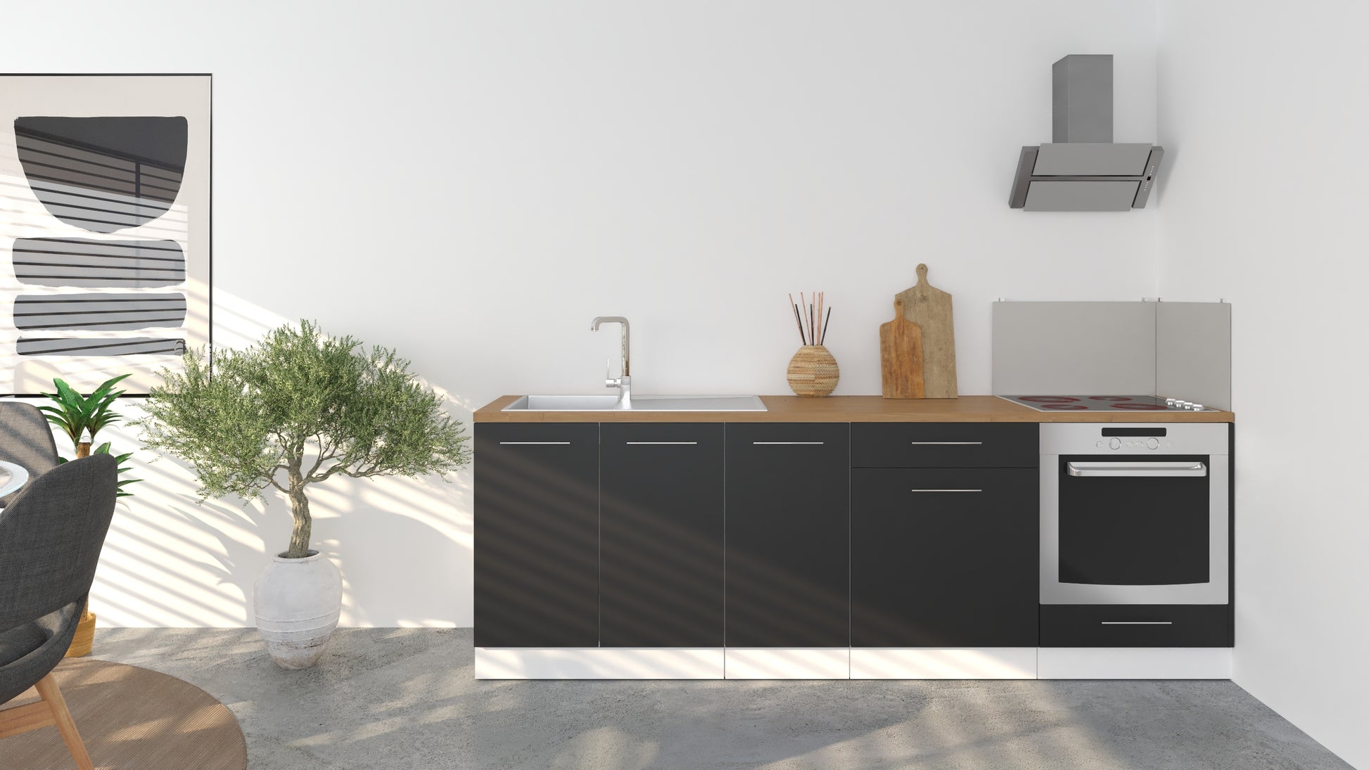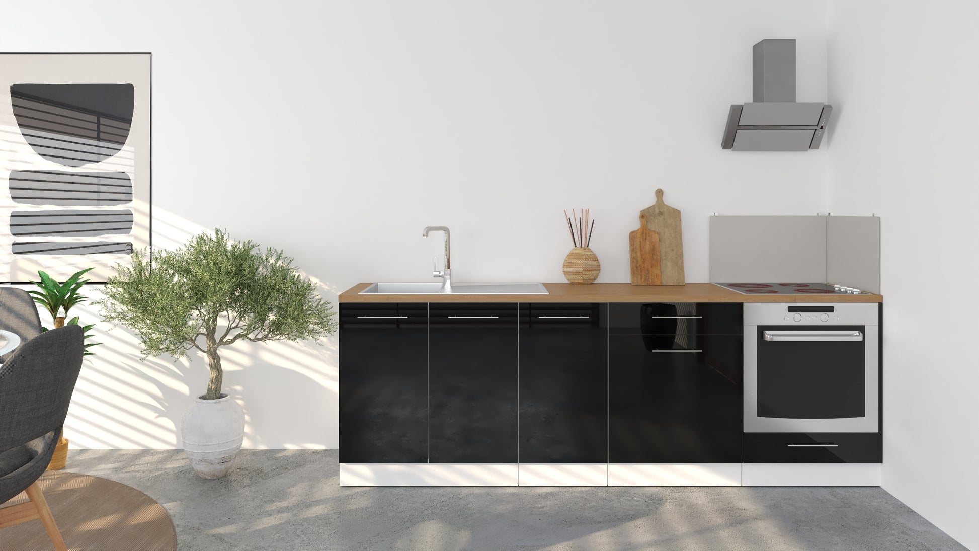 Notre cuisine complète Linéaire 240 - BAS est composée de 4 meubles: