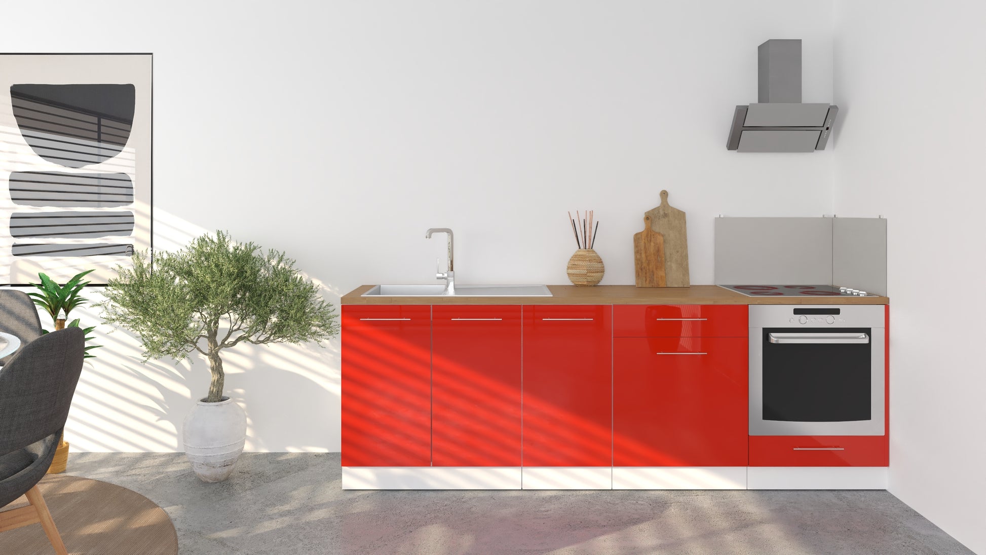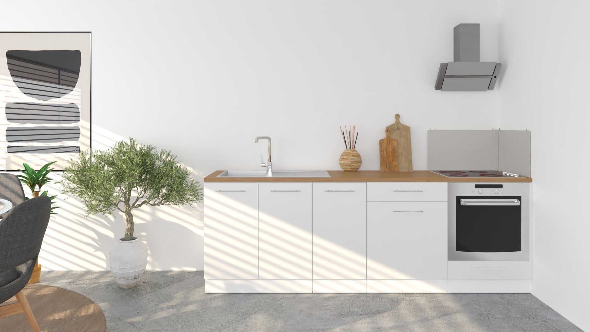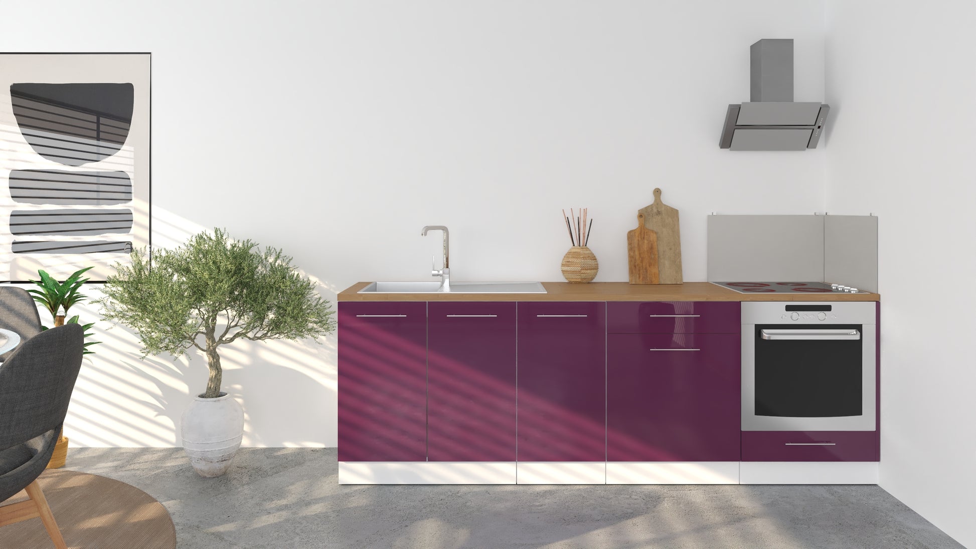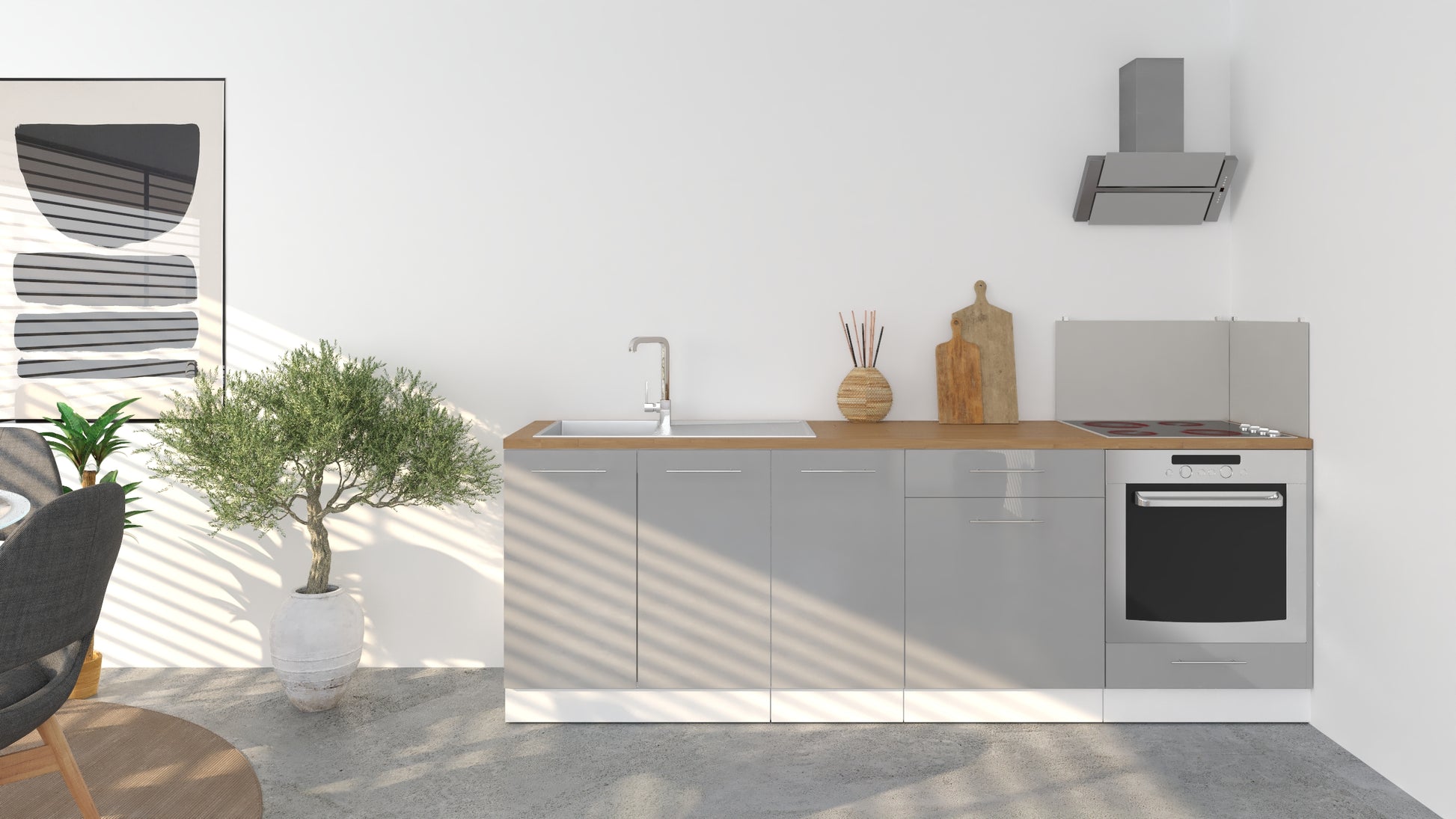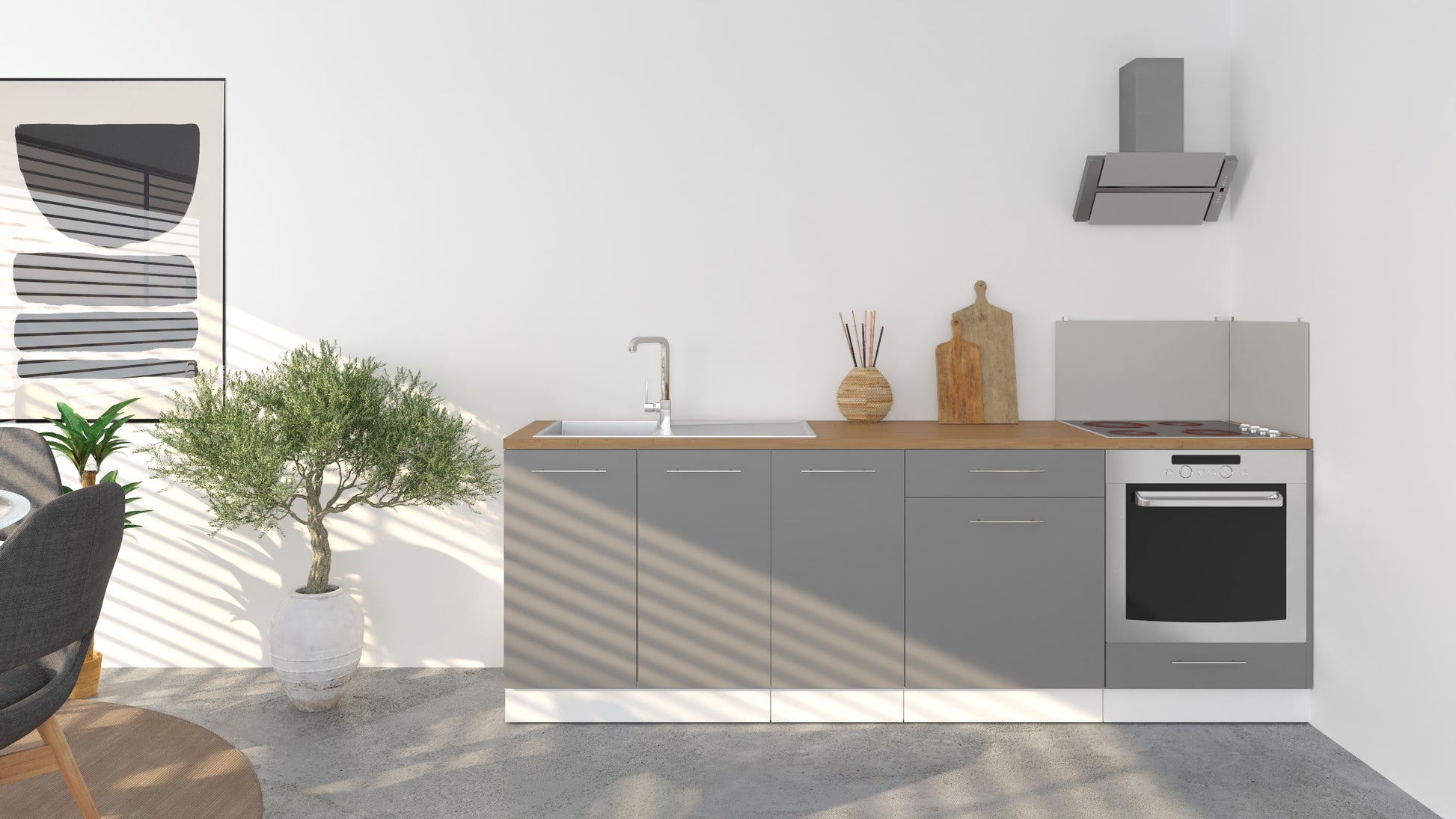 Notre cuisine complète Linéaire 240 - BAS est composée de 4 meubles:
