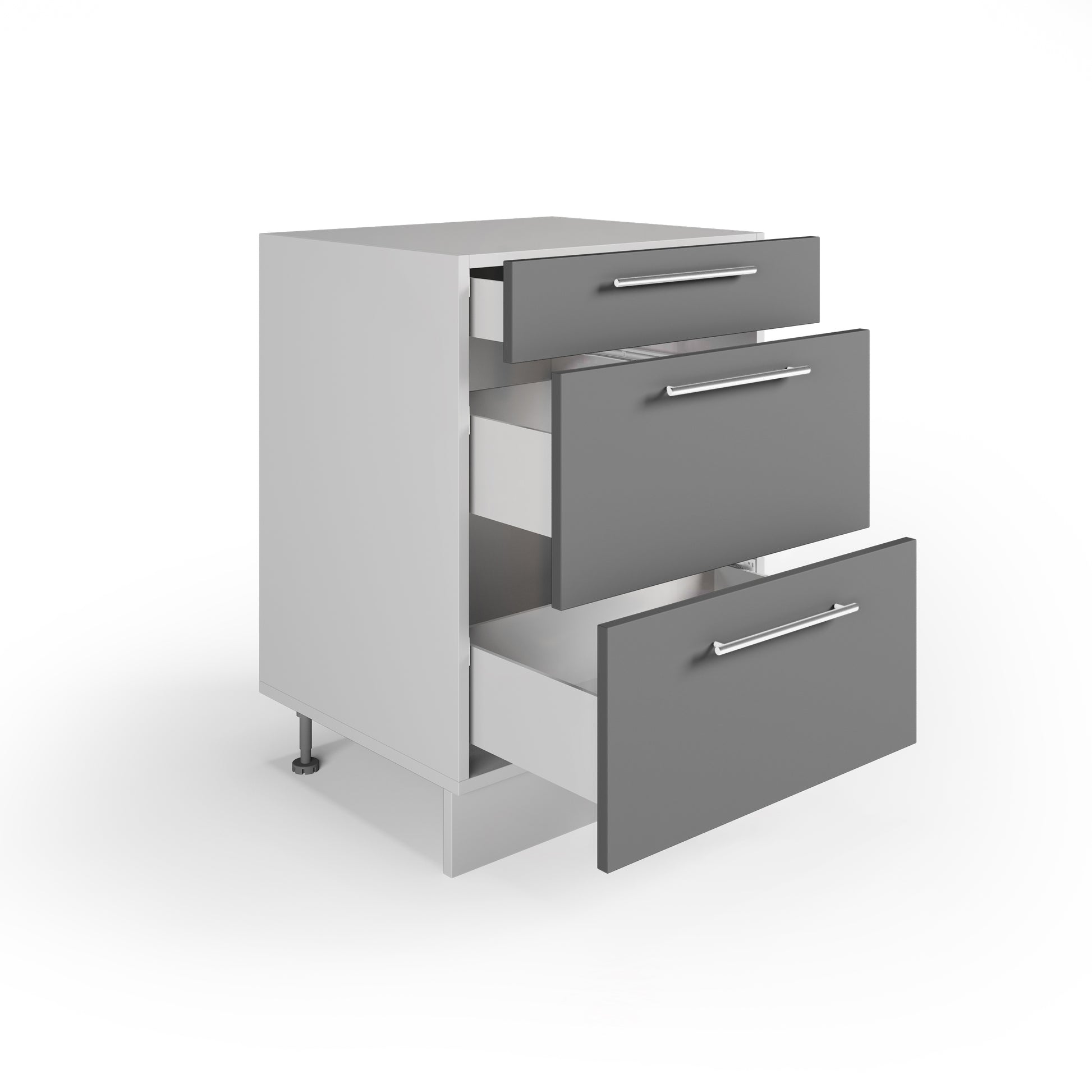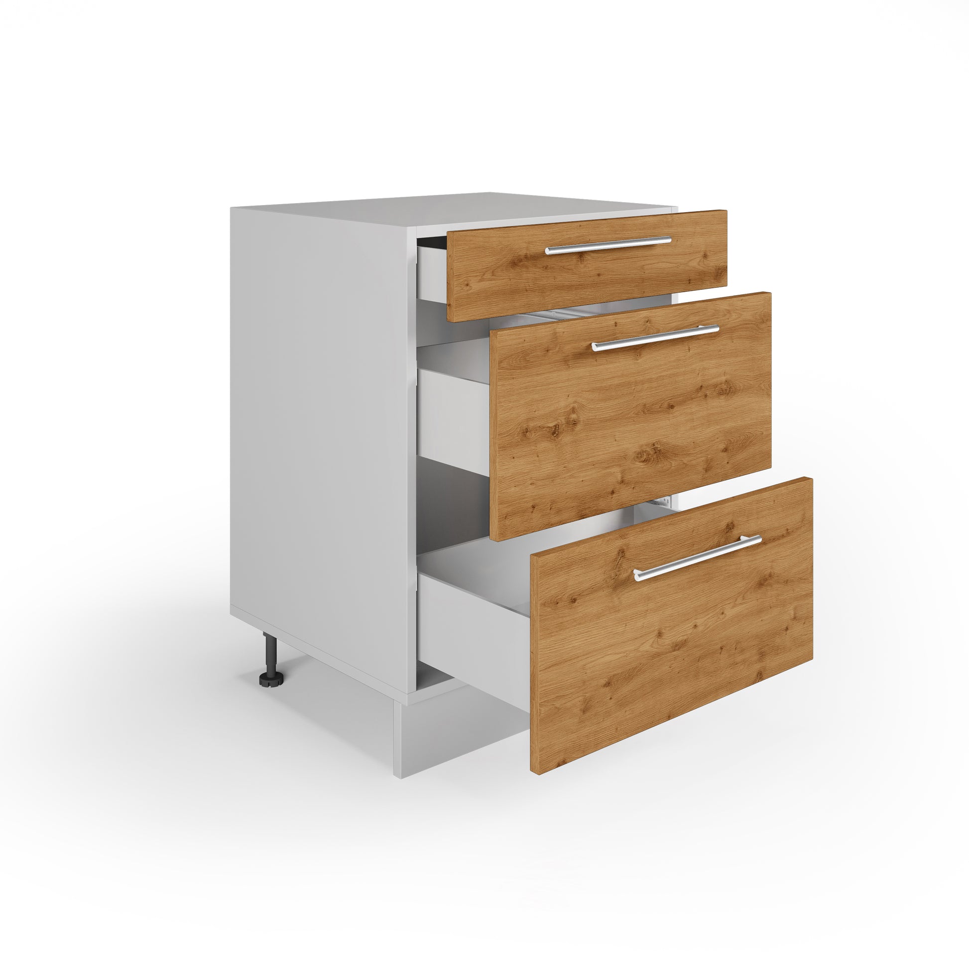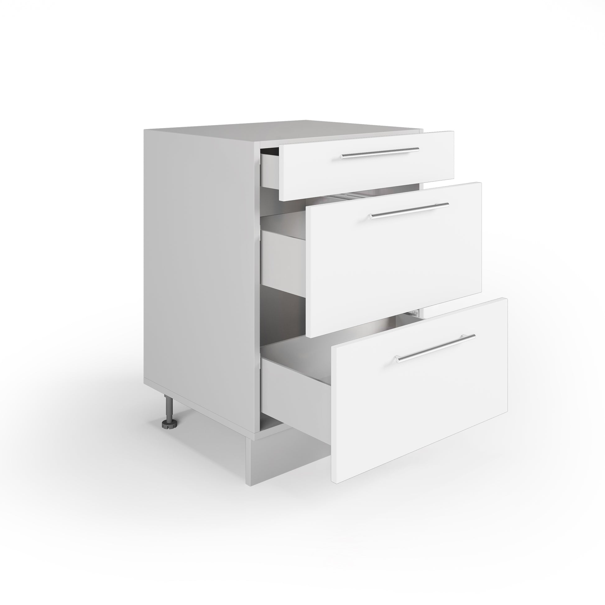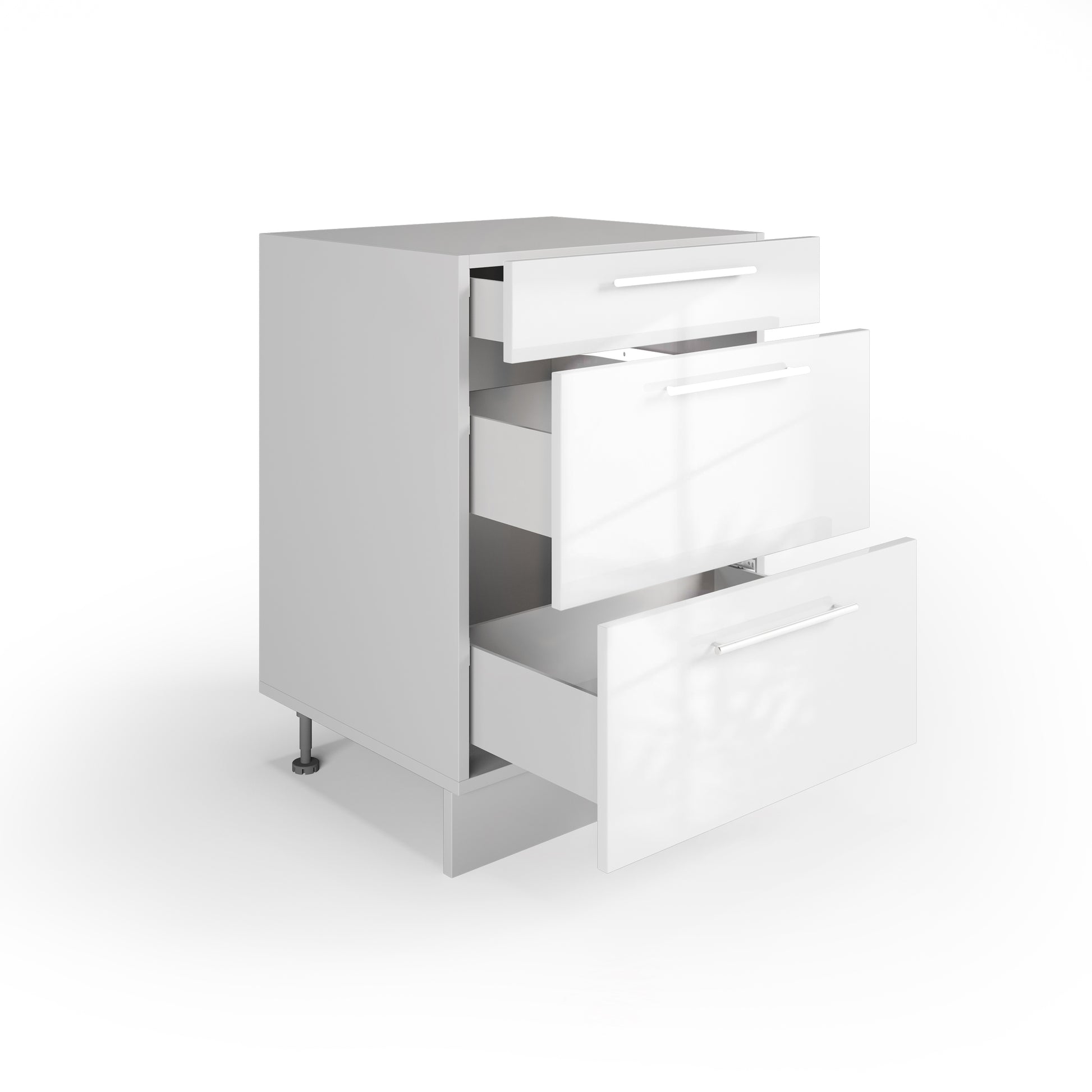 Meuble de Cuisine Bas, Casserolier 60 cm, 3 Tiroirs