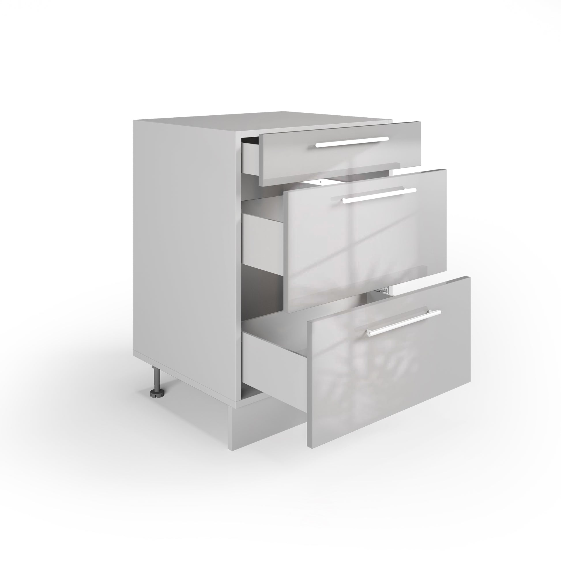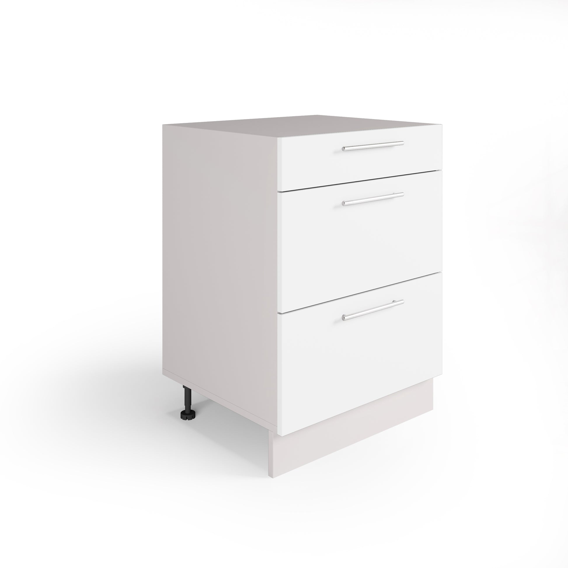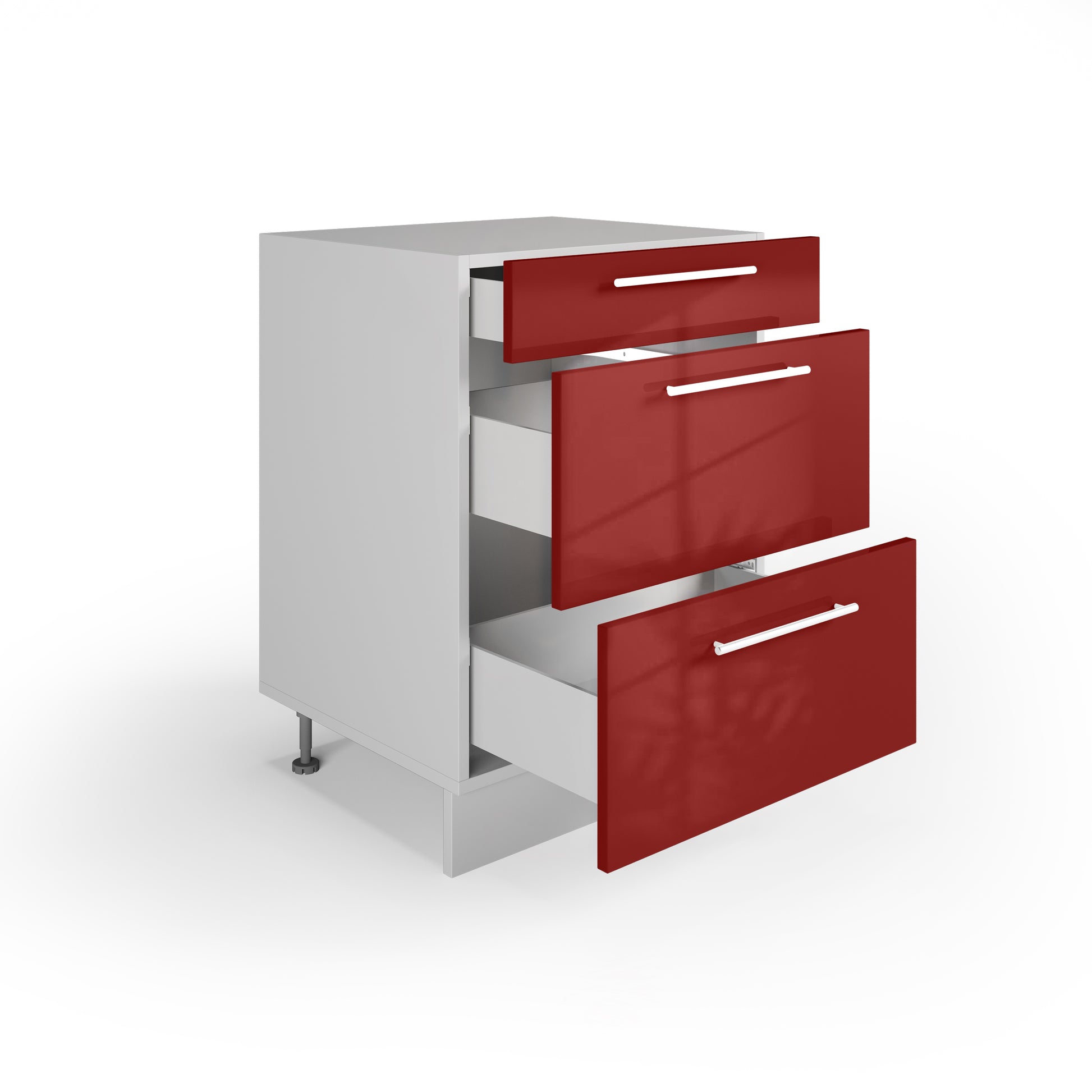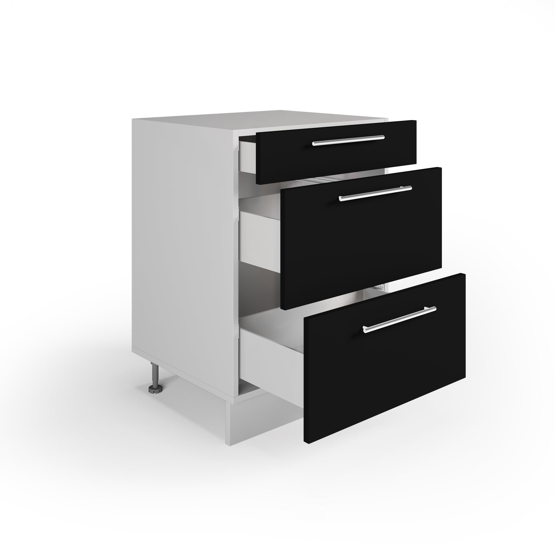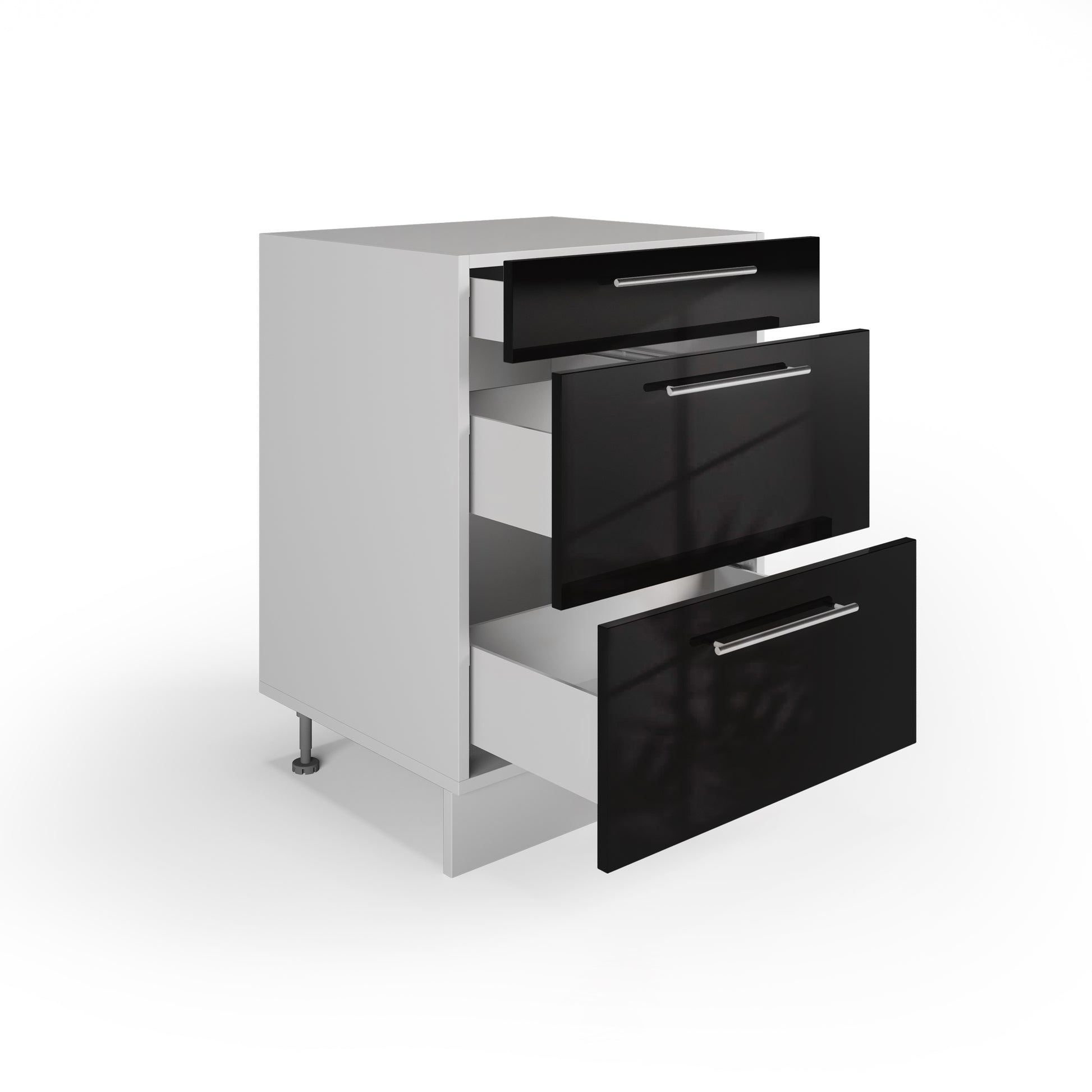 Meuble de Cuisine Bas, Casserolier 60 cm, 3 Tiroirs