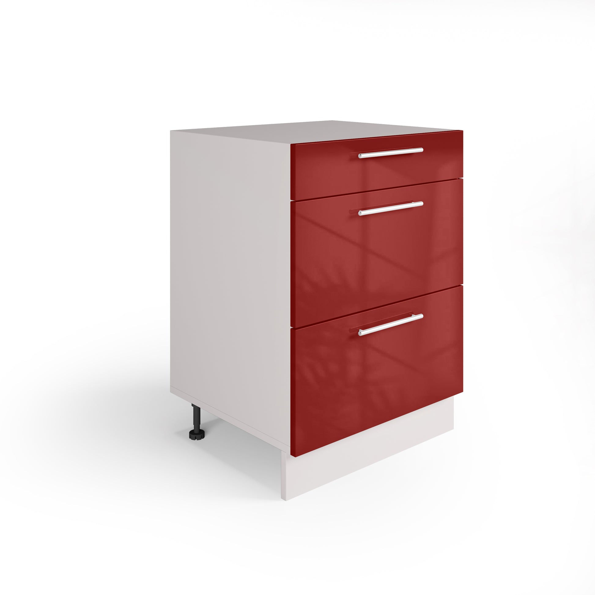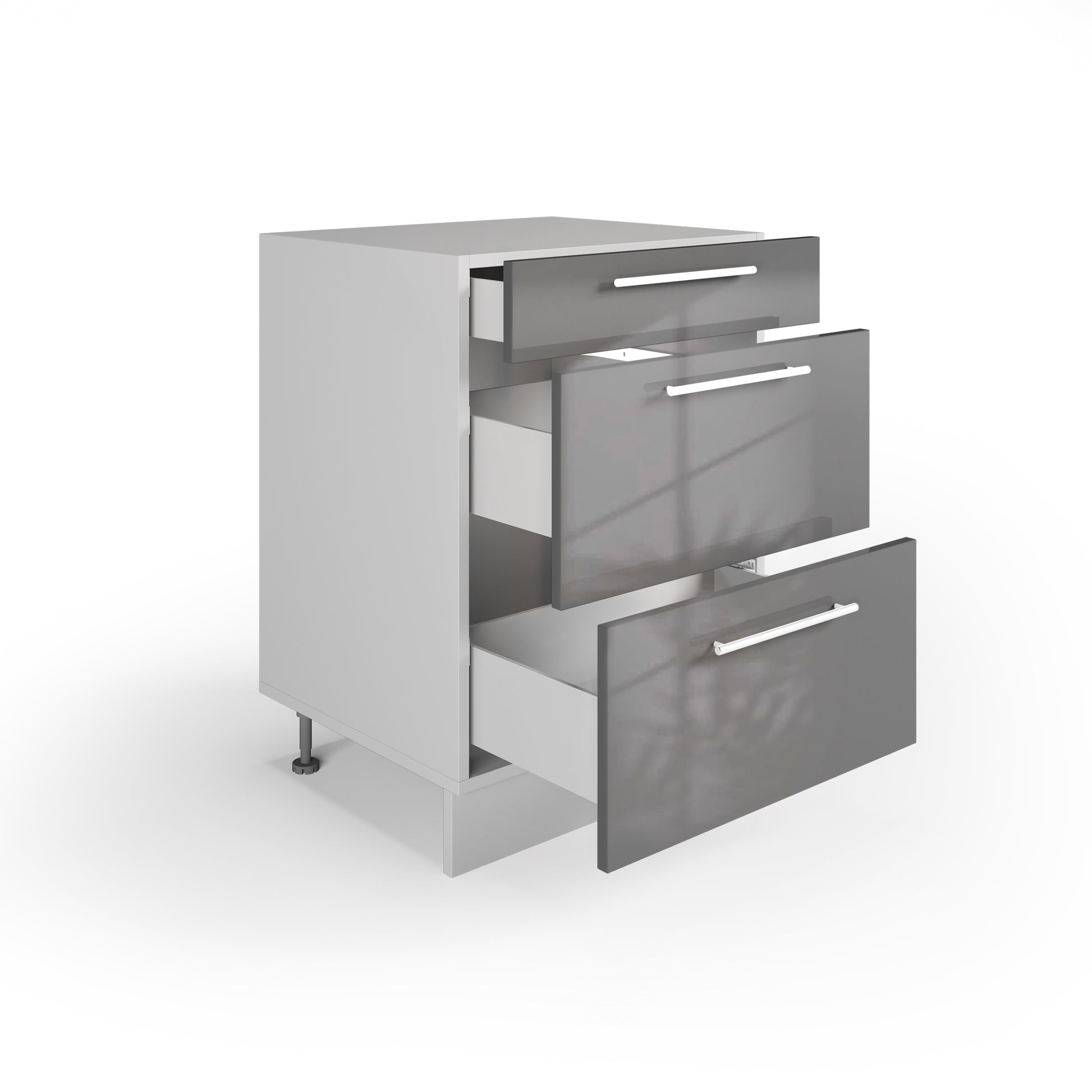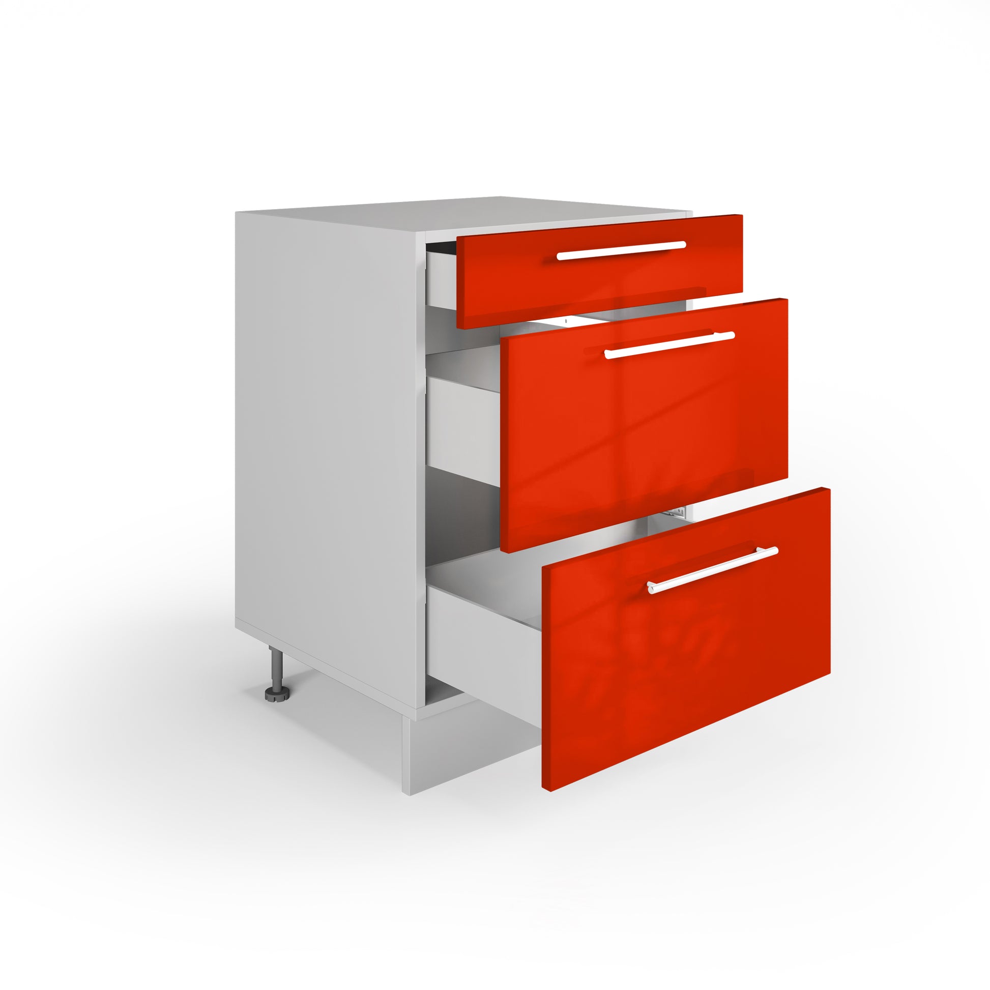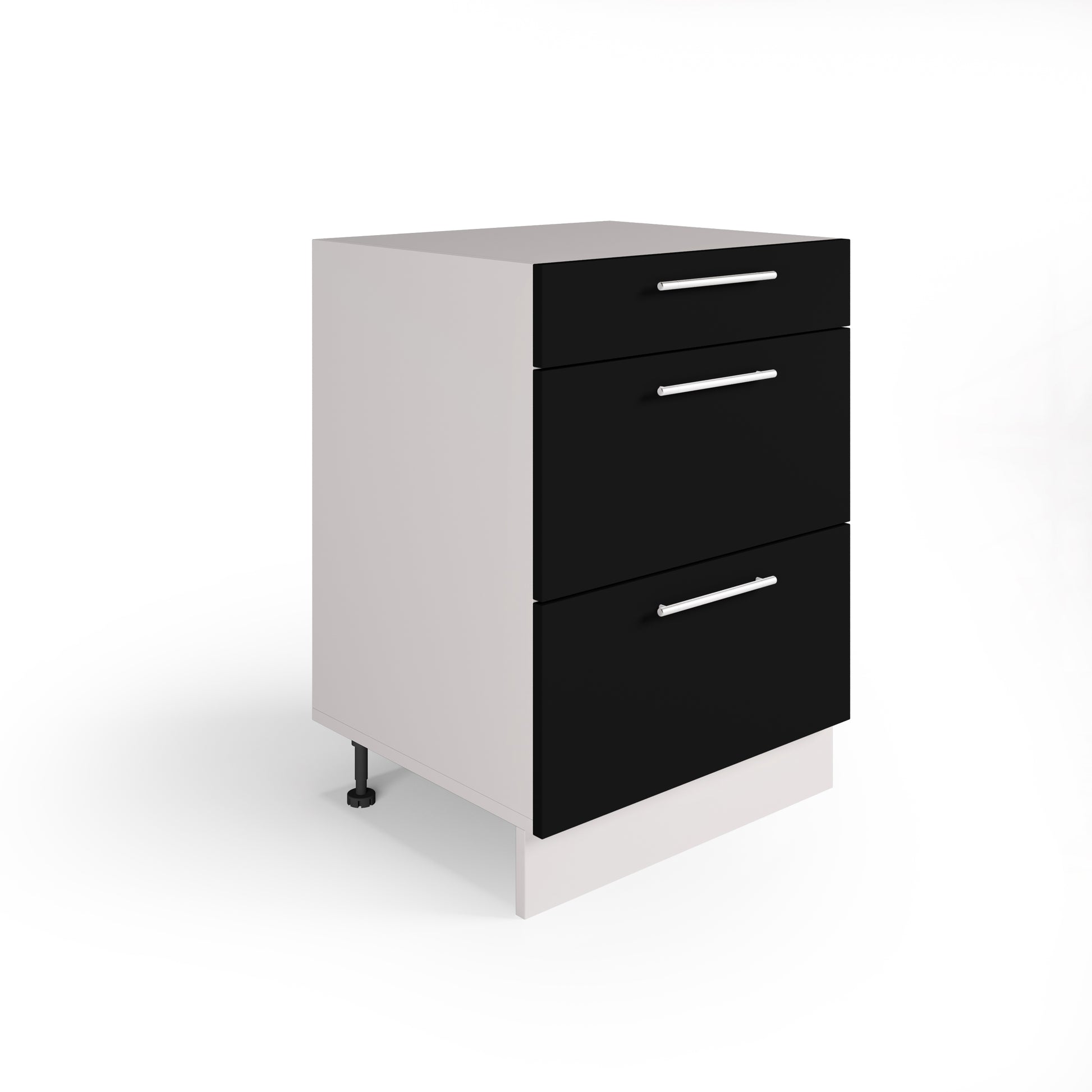 Meuble de Cuisine Bas, Casserolier 60 cm, 3 Tiroirs