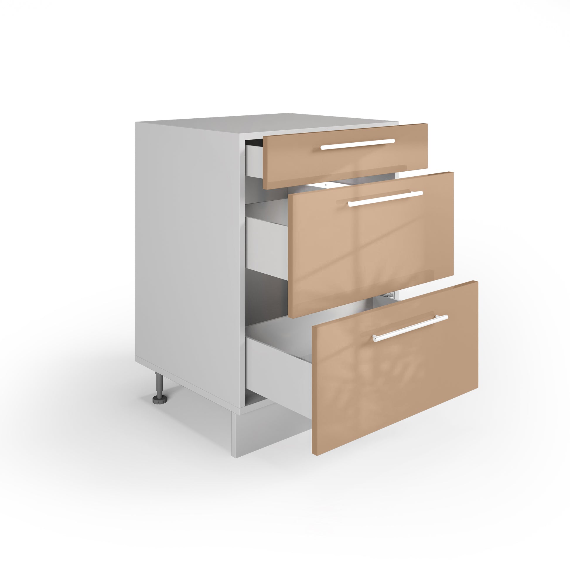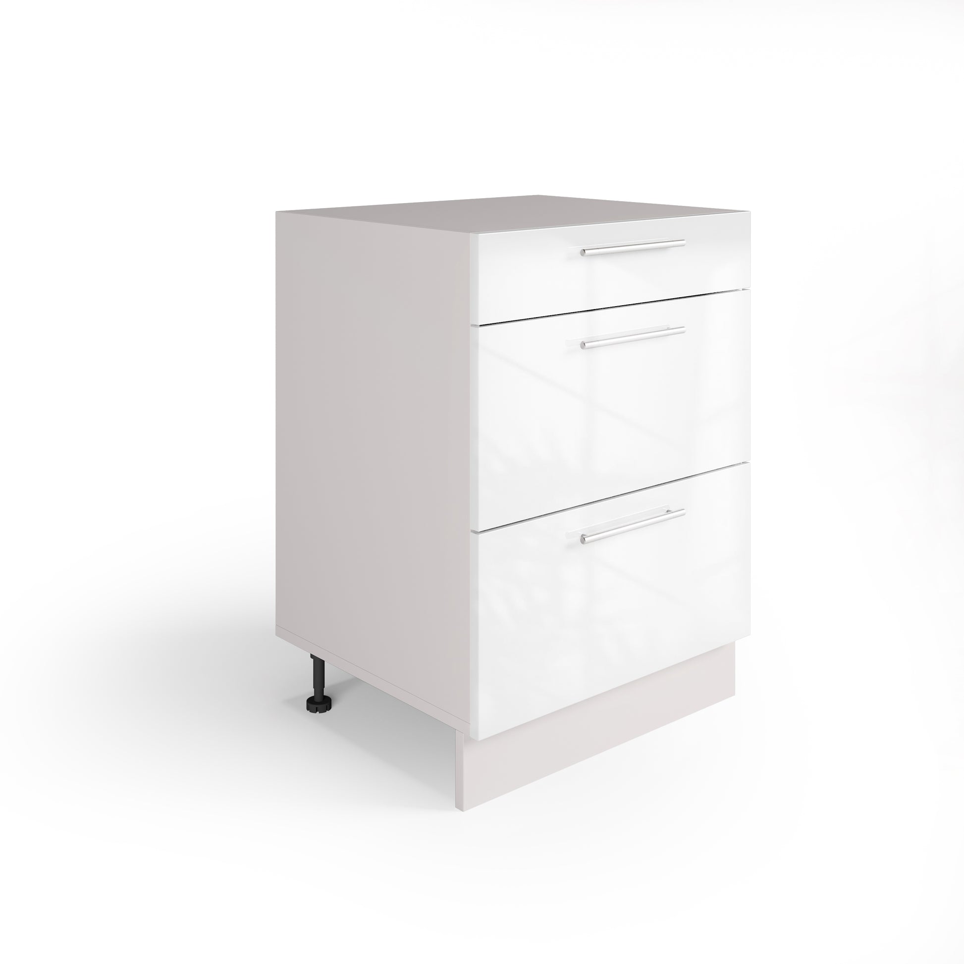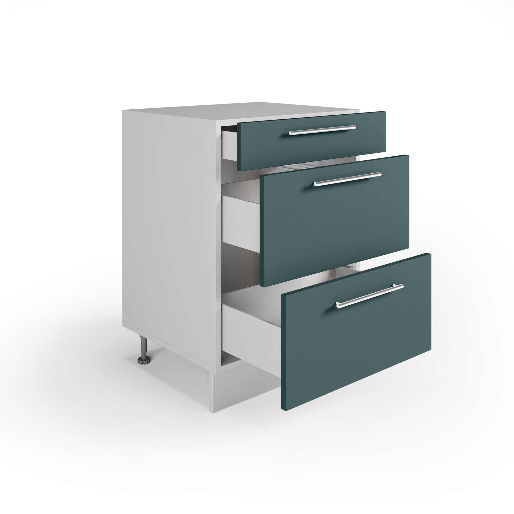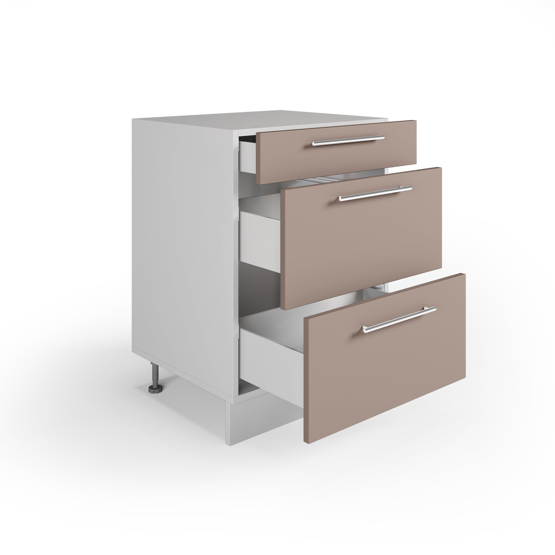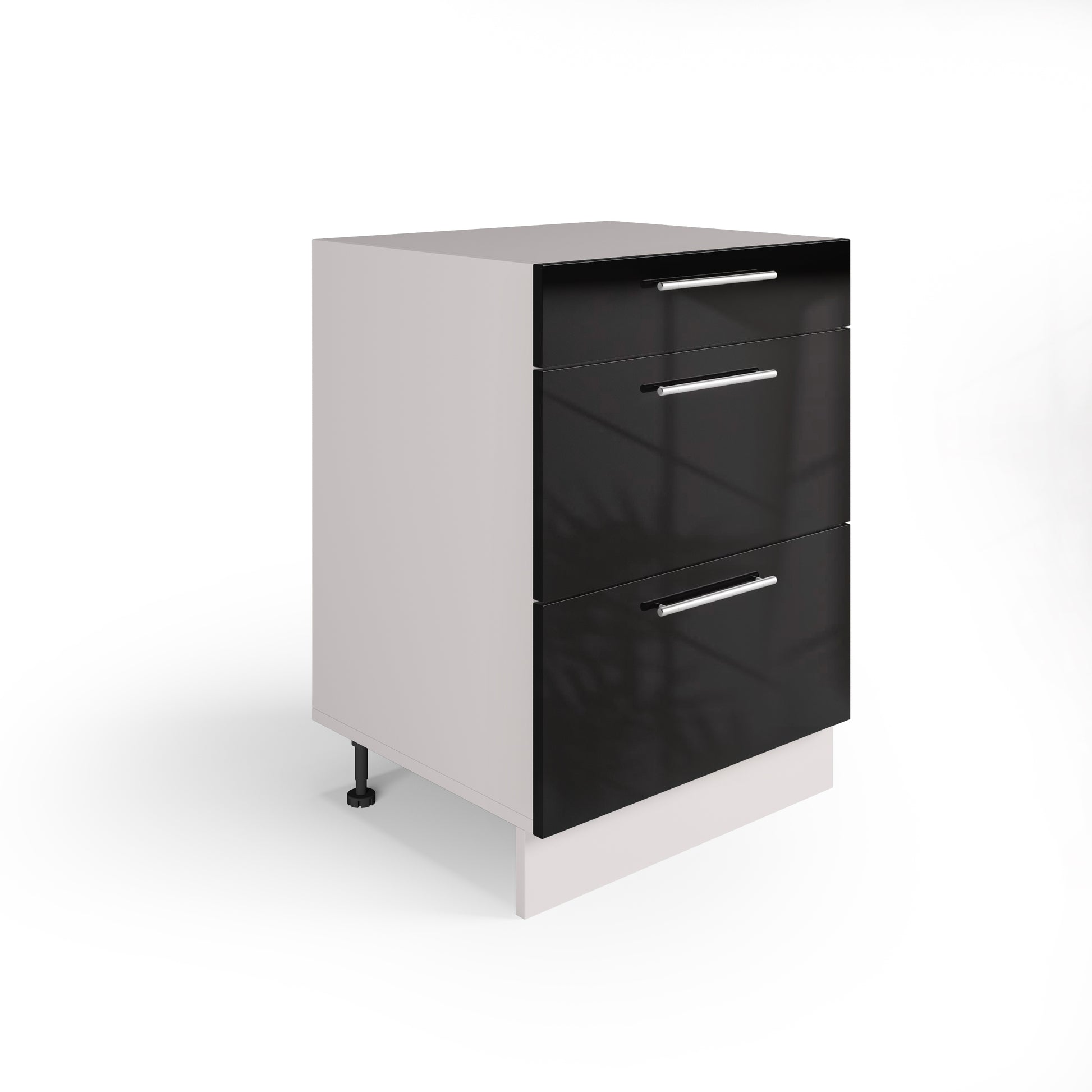 Meuble de Cuisine Bas, Casserolier 60 cm, 3 Tiroirs