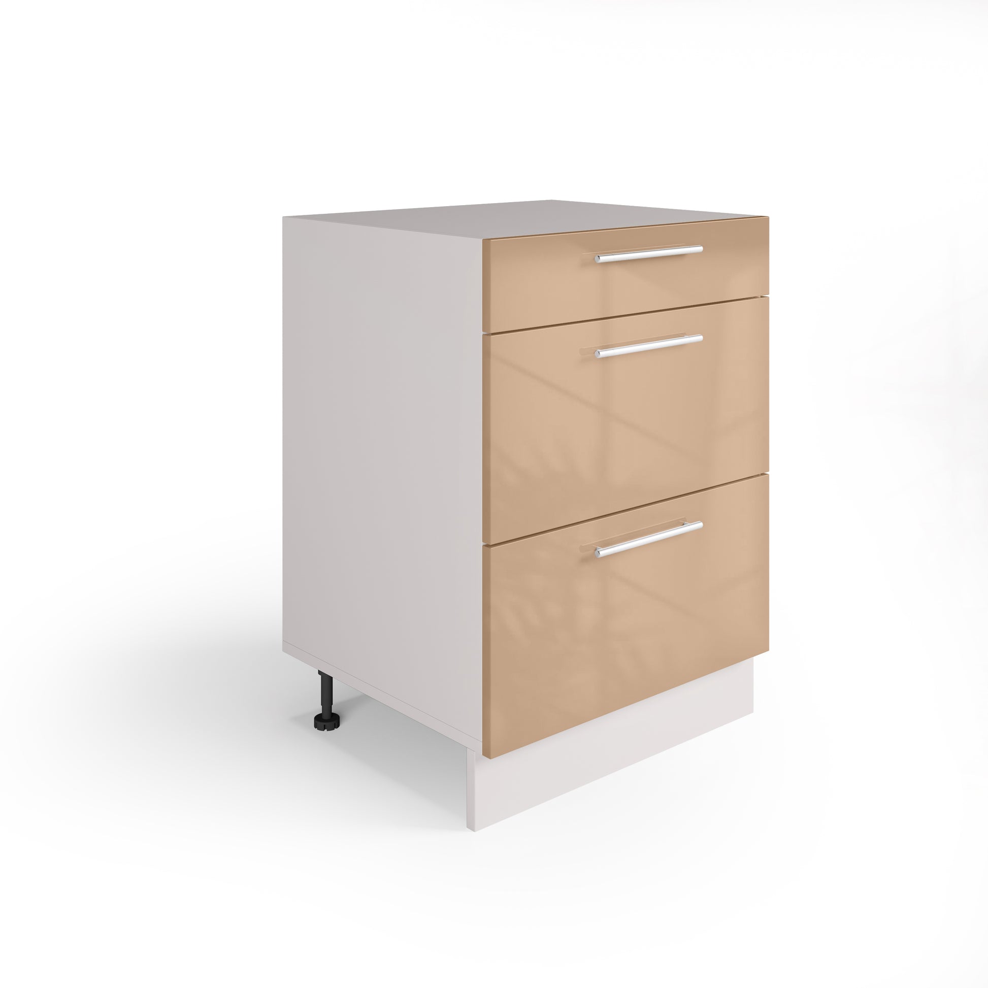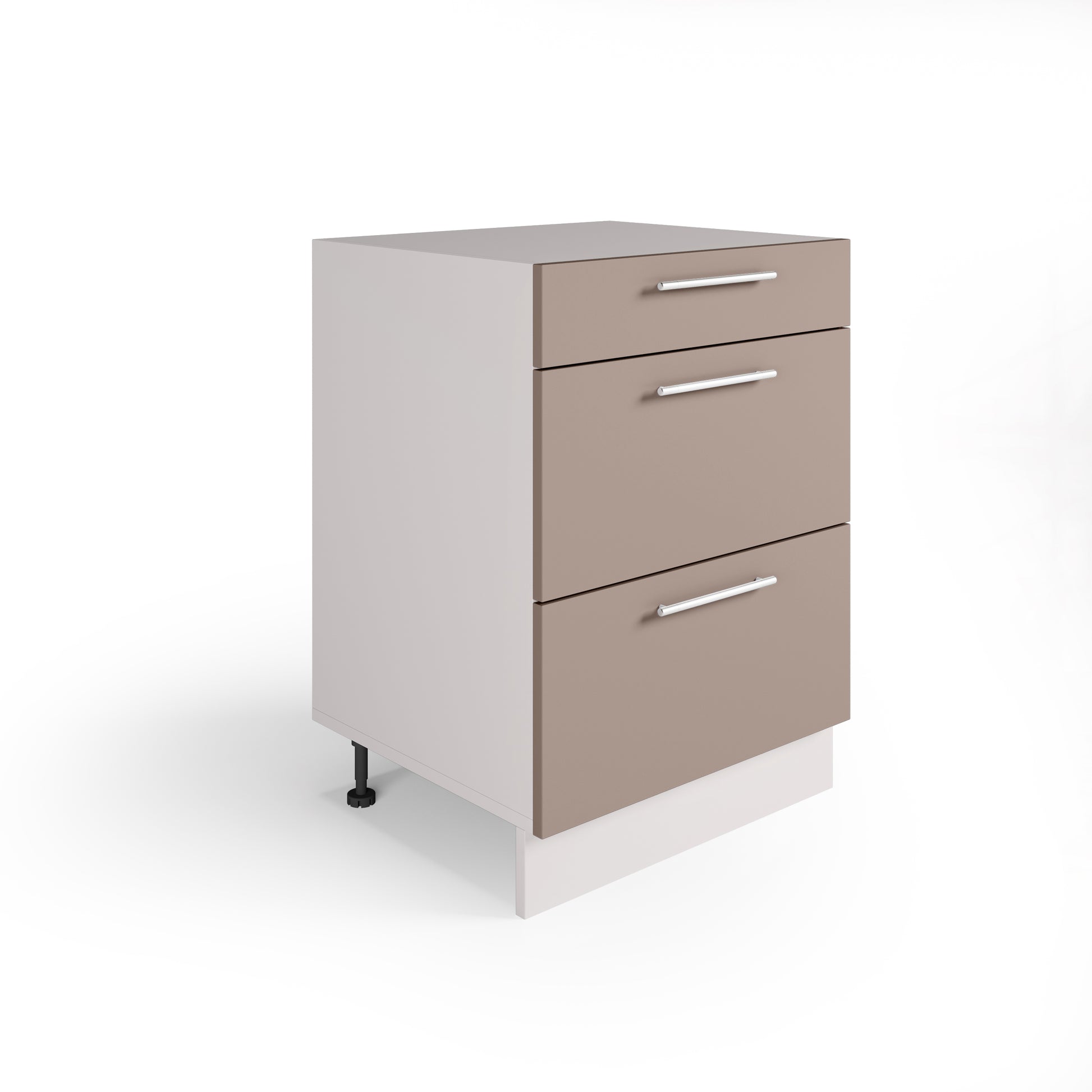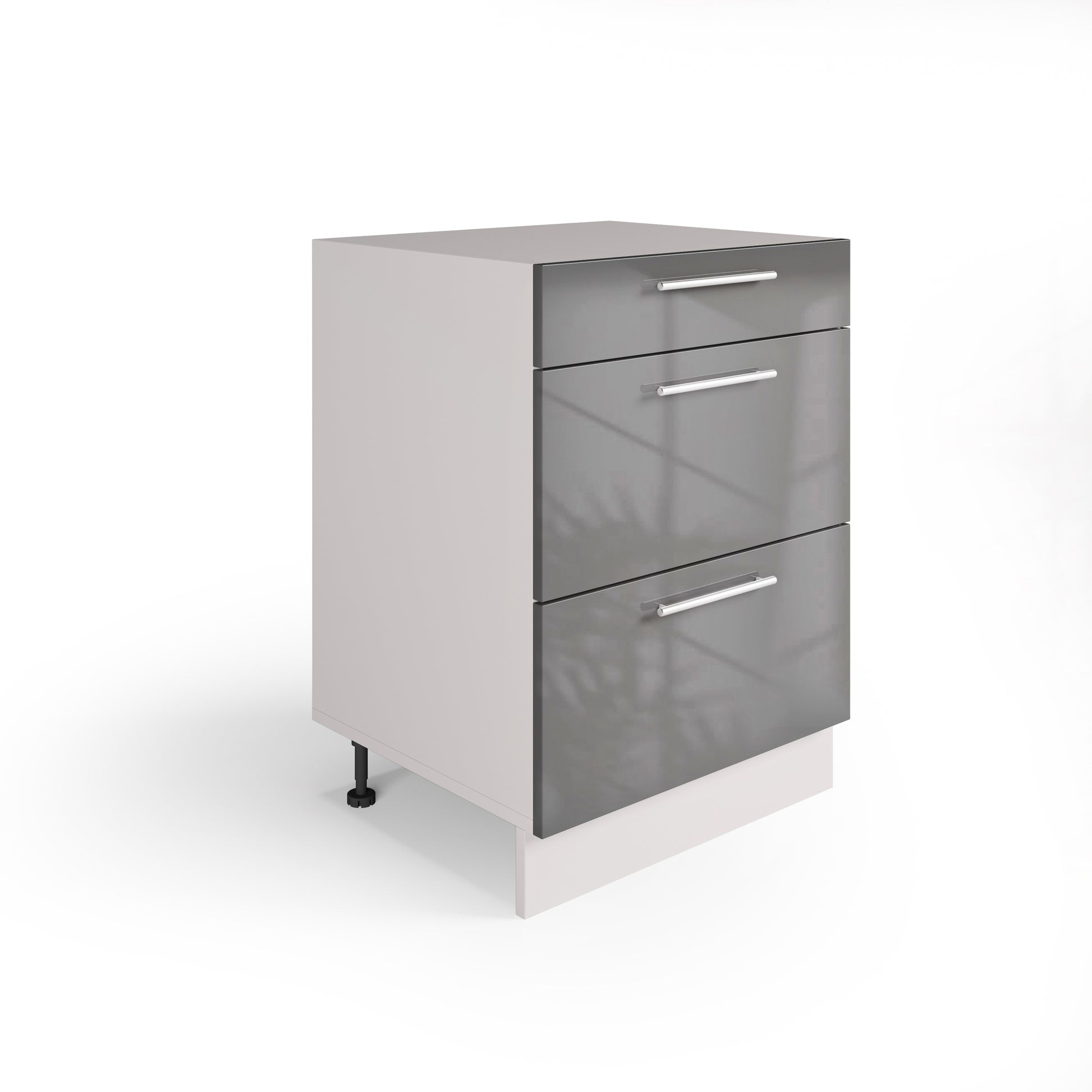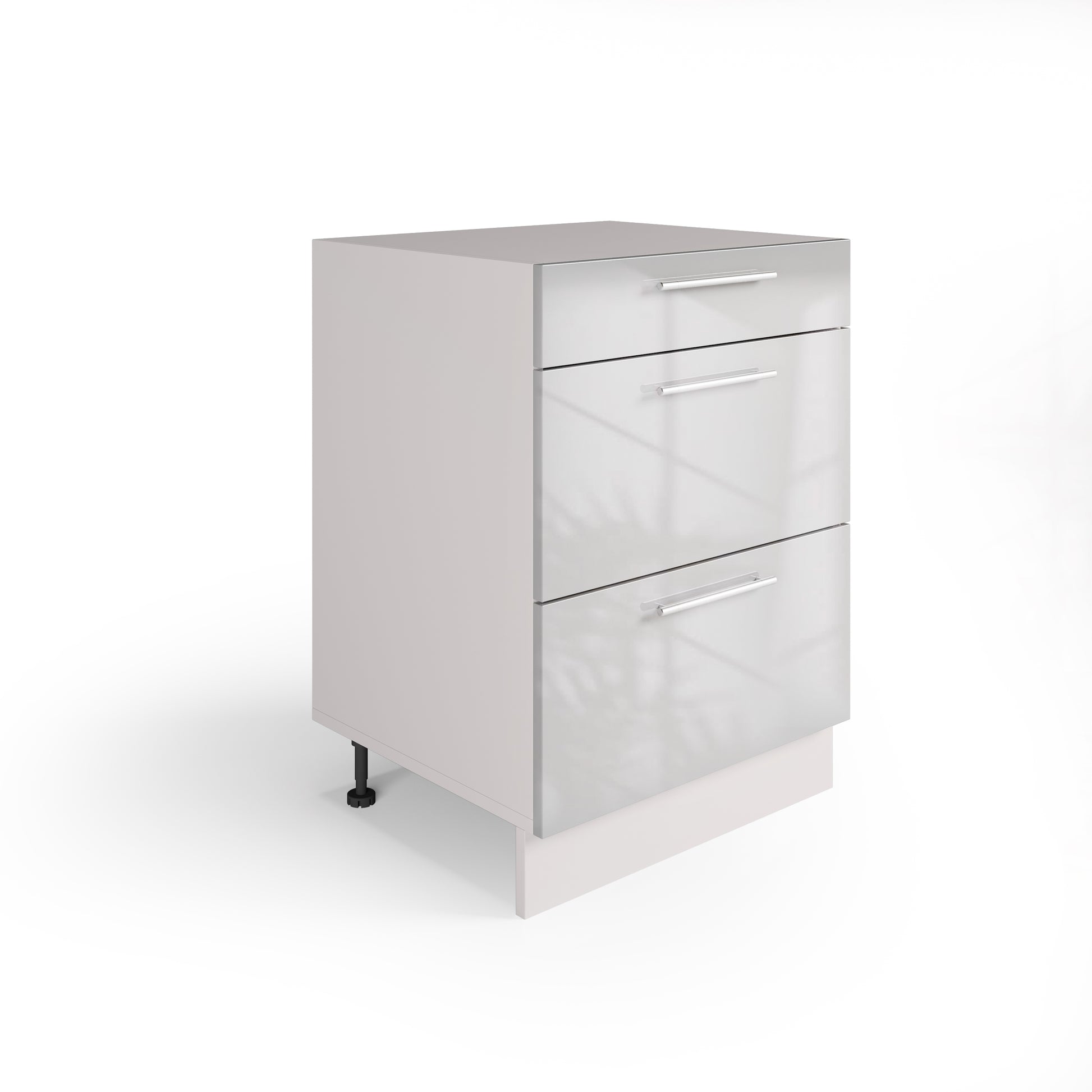 Meuble de Cuisine Bas, Casserolier 60 cm, 3 Tiroirs