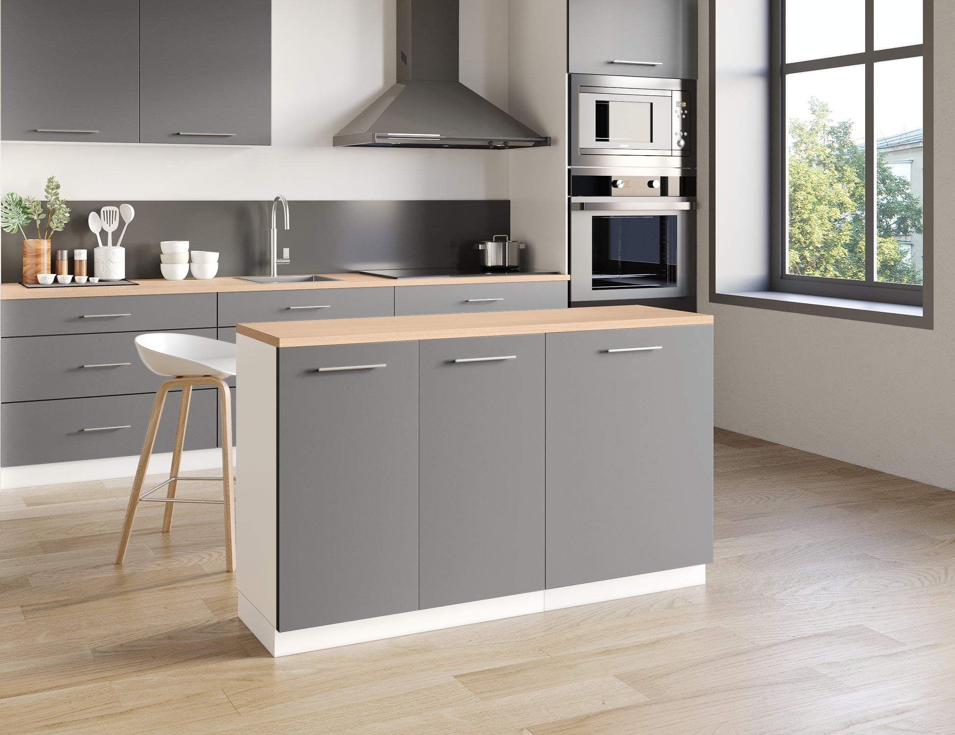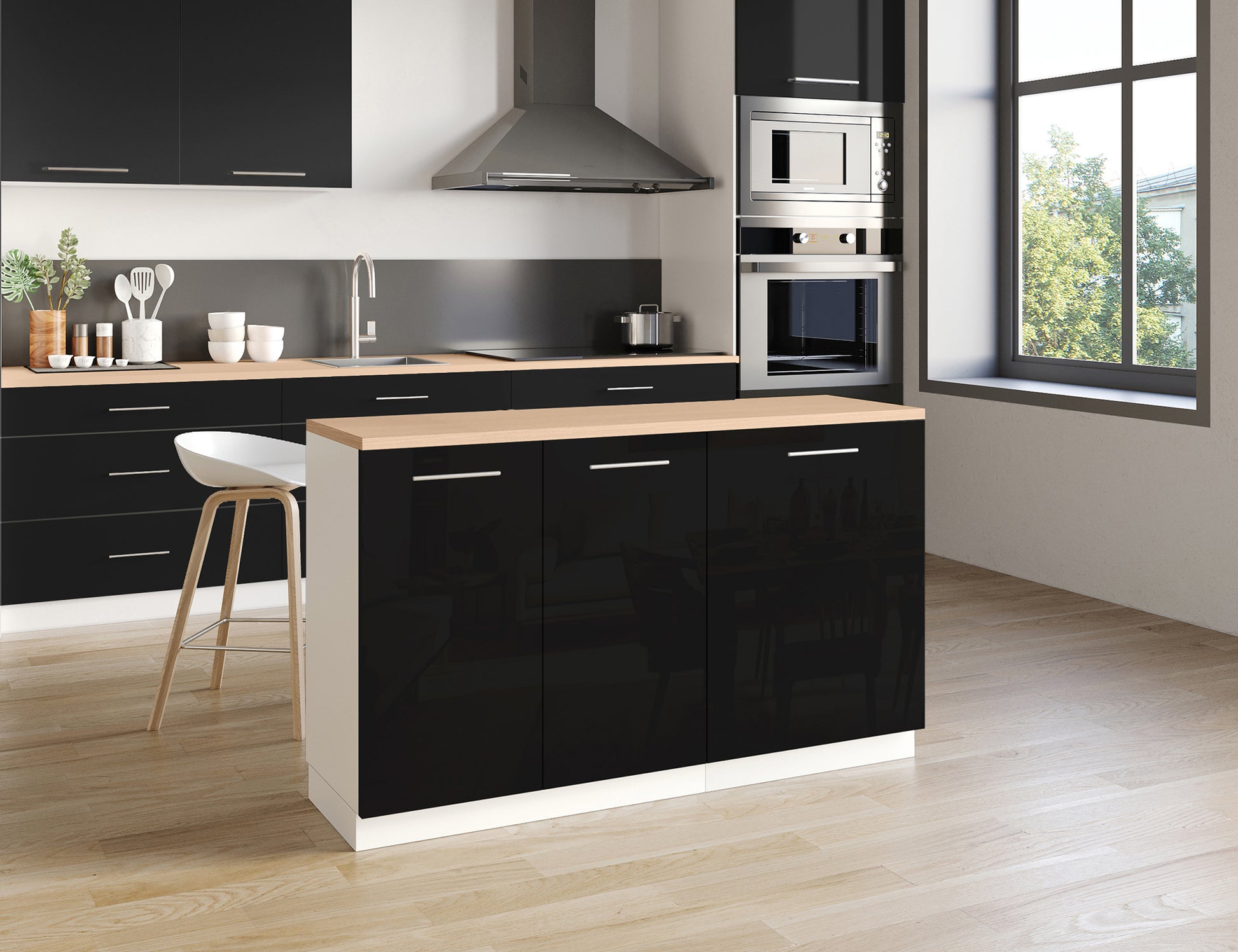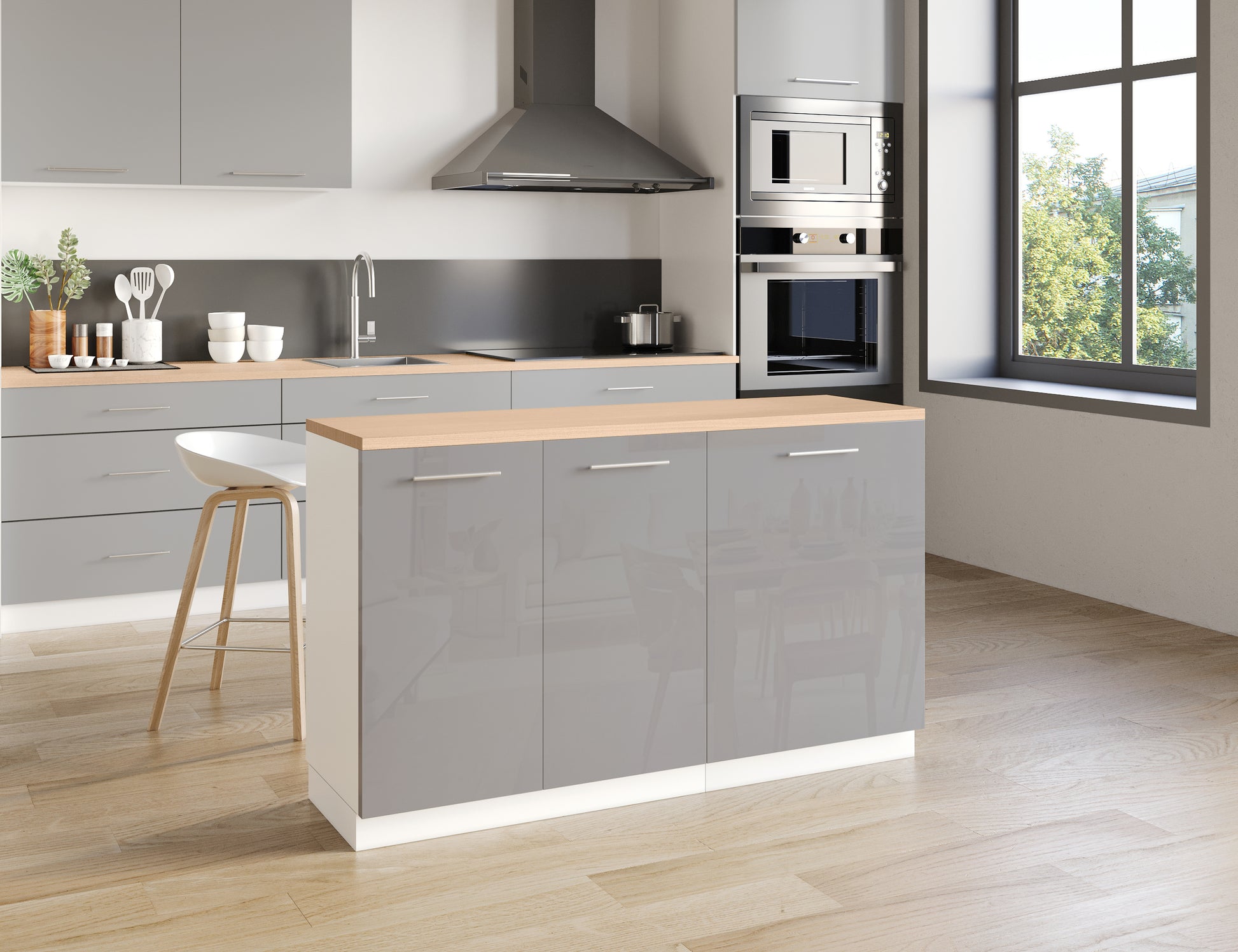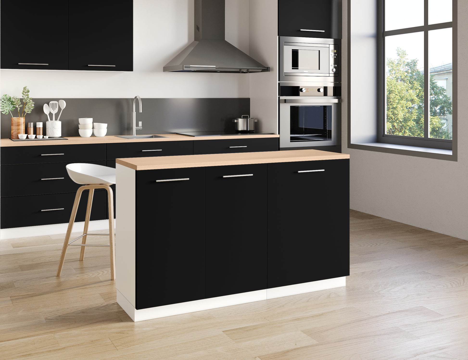 Notre îlot central de cuisine se compose de 2 meubles bas, adapté à une configuration d'îlot de 140x50 cm.
