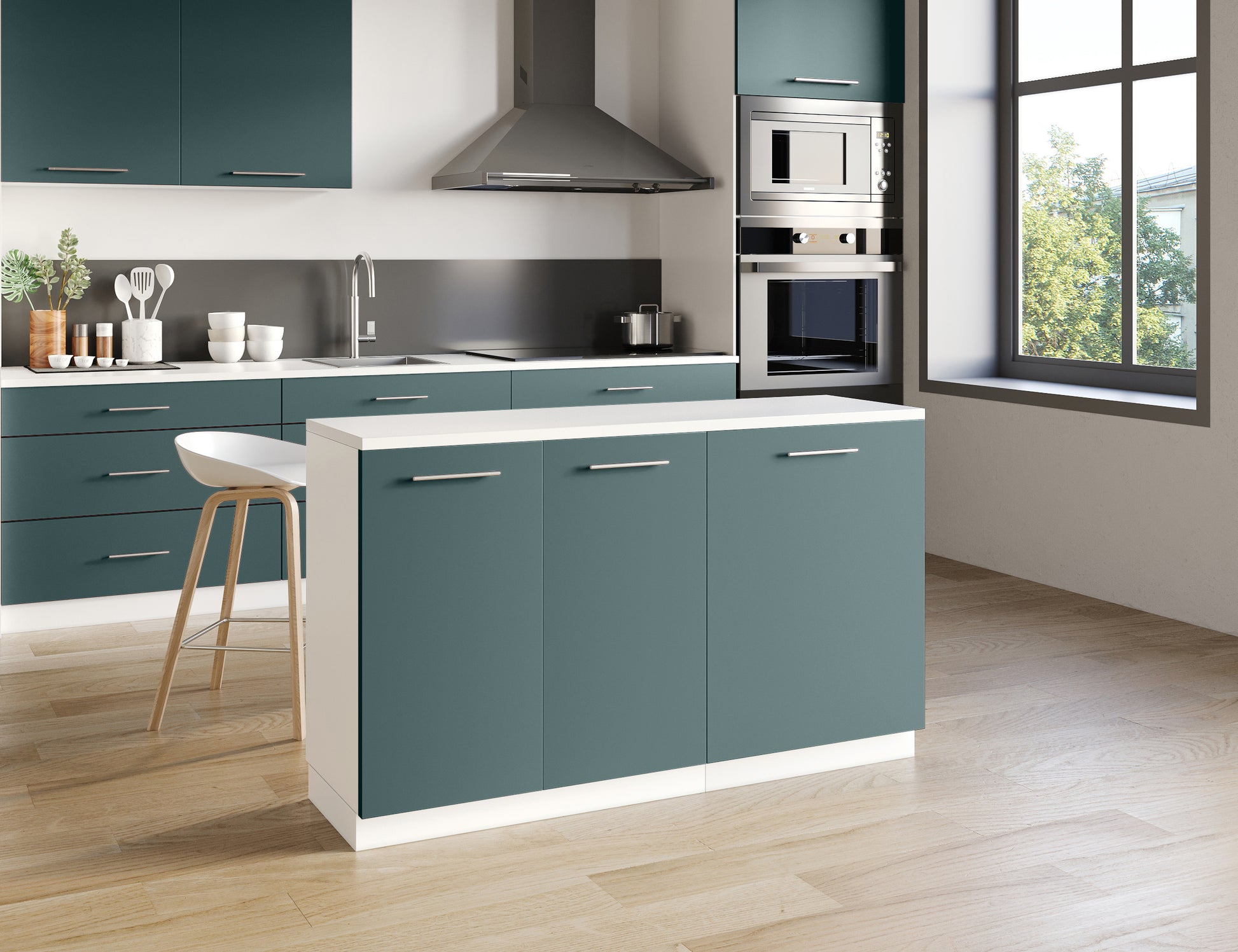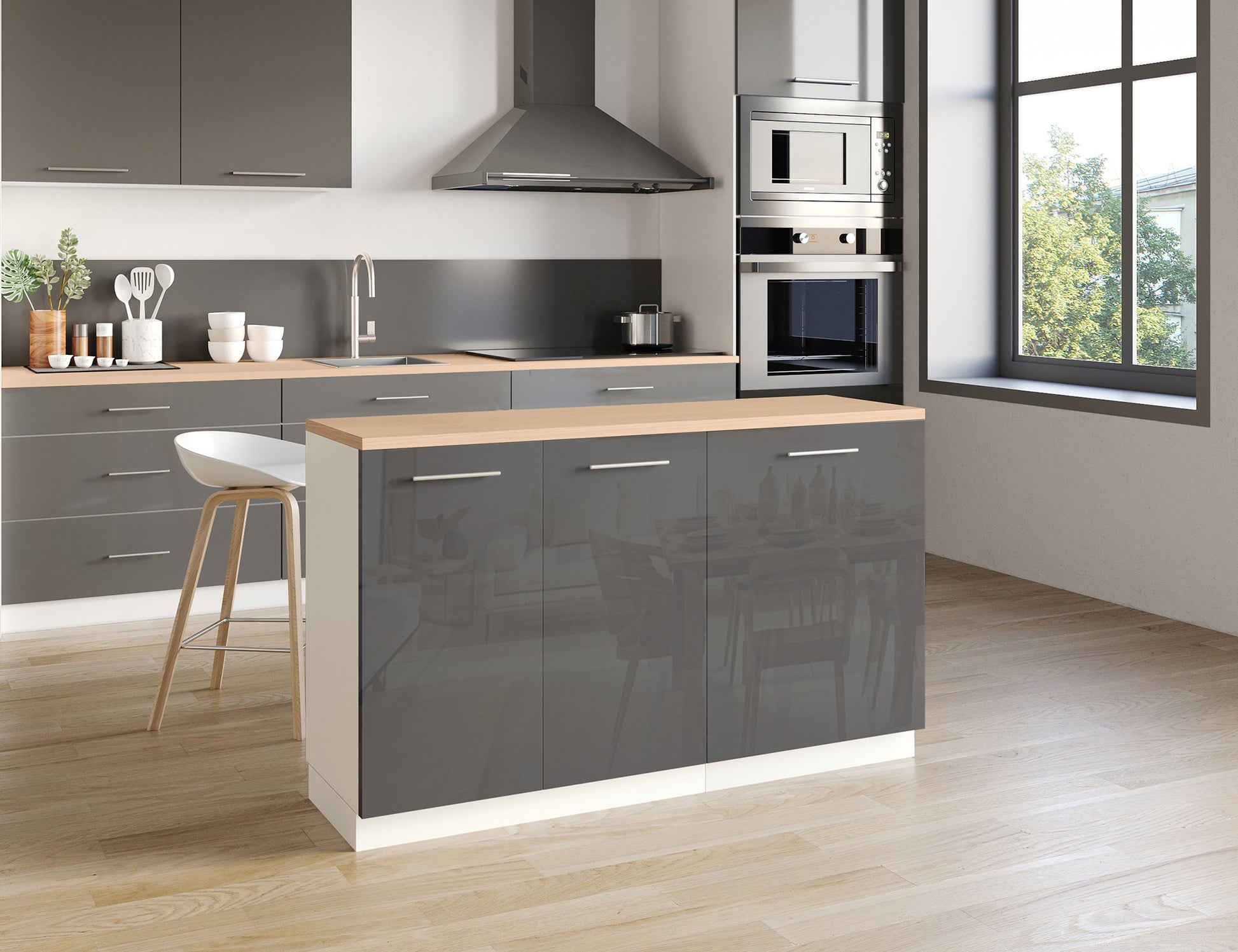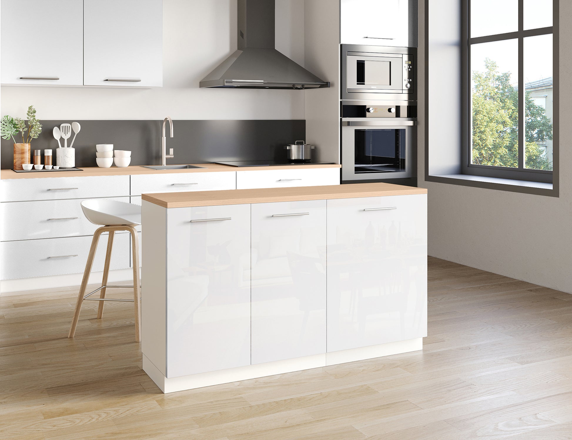 Notre îlot central de cuisine se compose de 2 meubles bas, adapté à une configuration d'îlot de 140x50 cm.