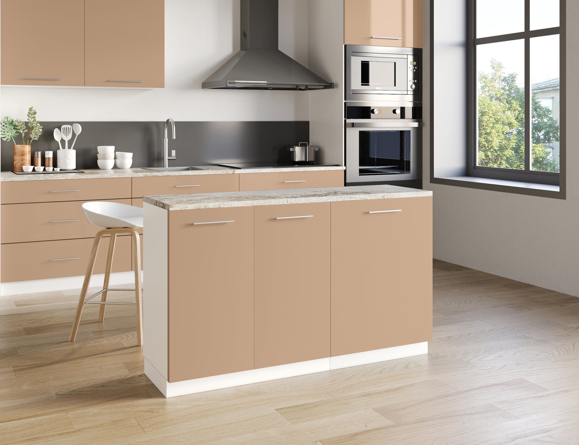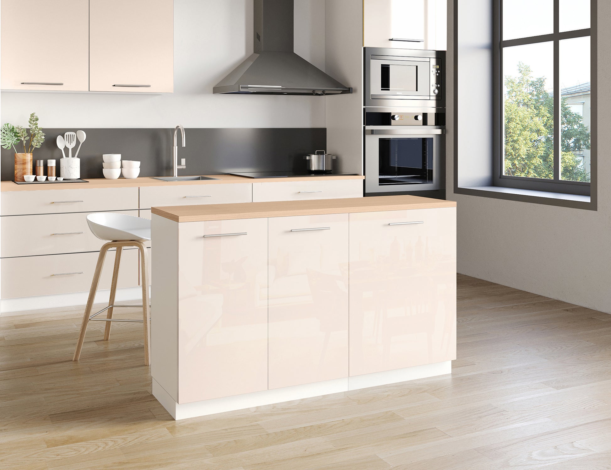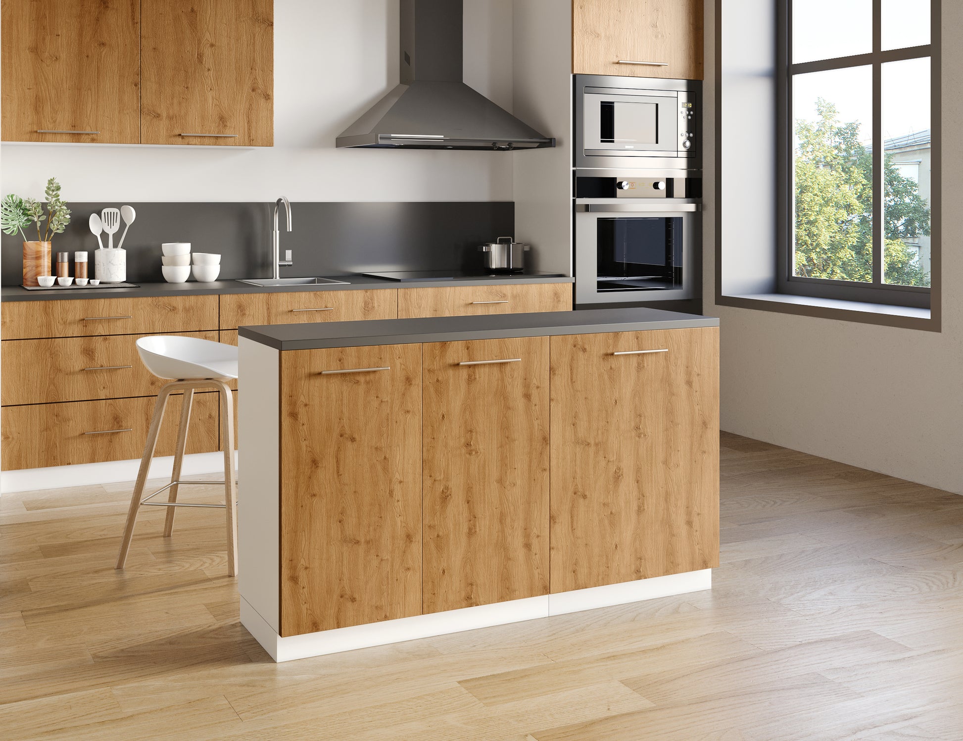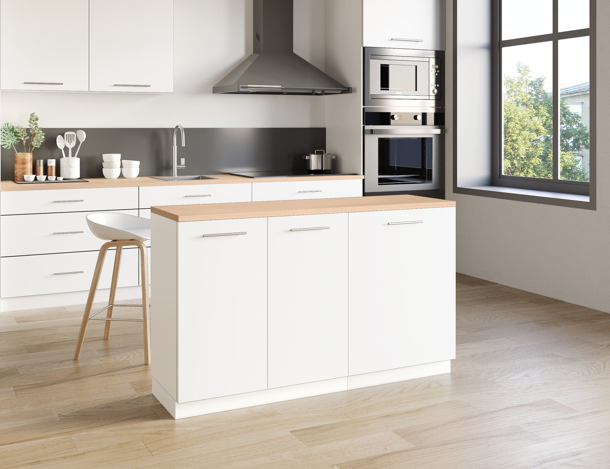 Notre îlot central de cuisine se compose de 2 meubles bas, adapté à une configuration d'îlot de 140x50 cm.