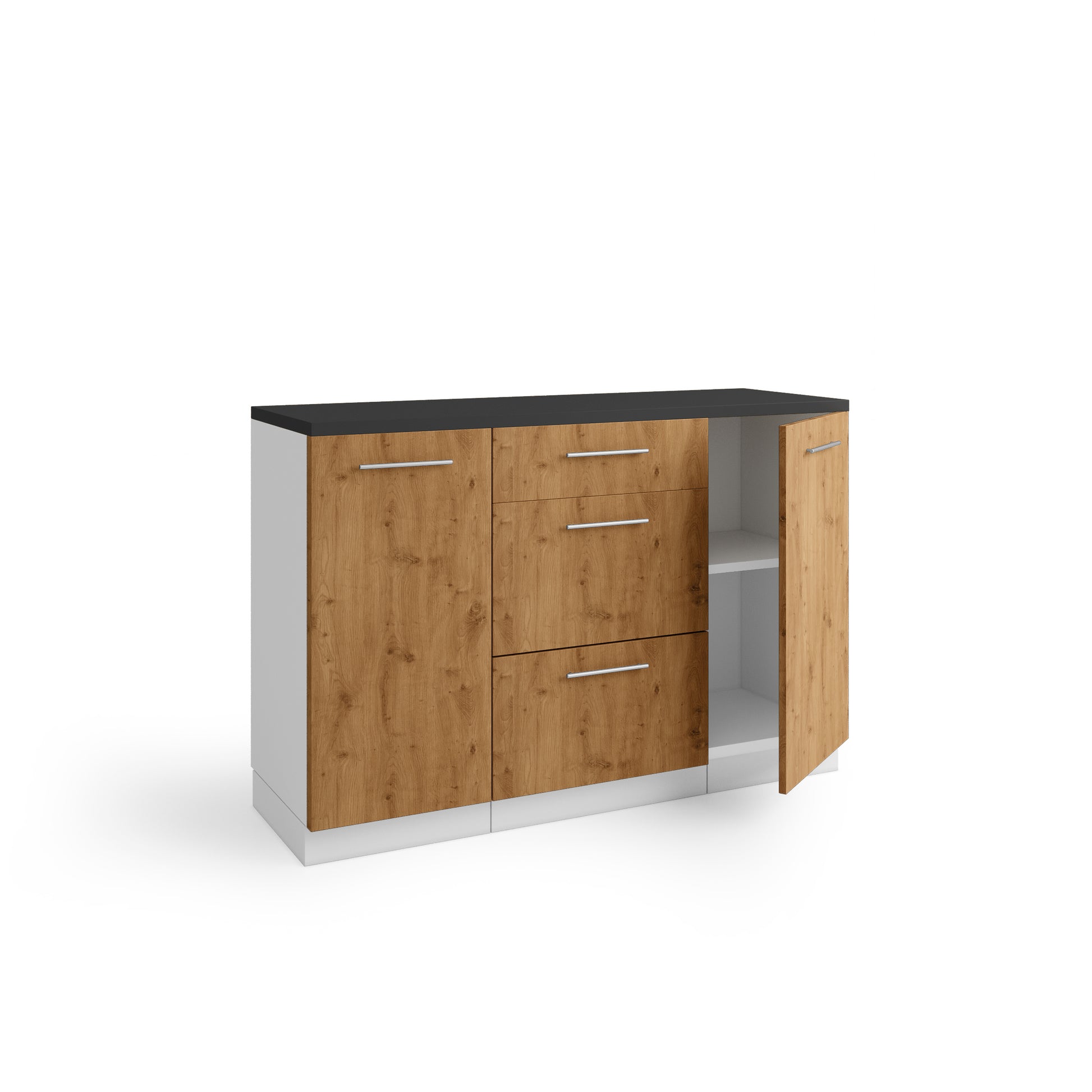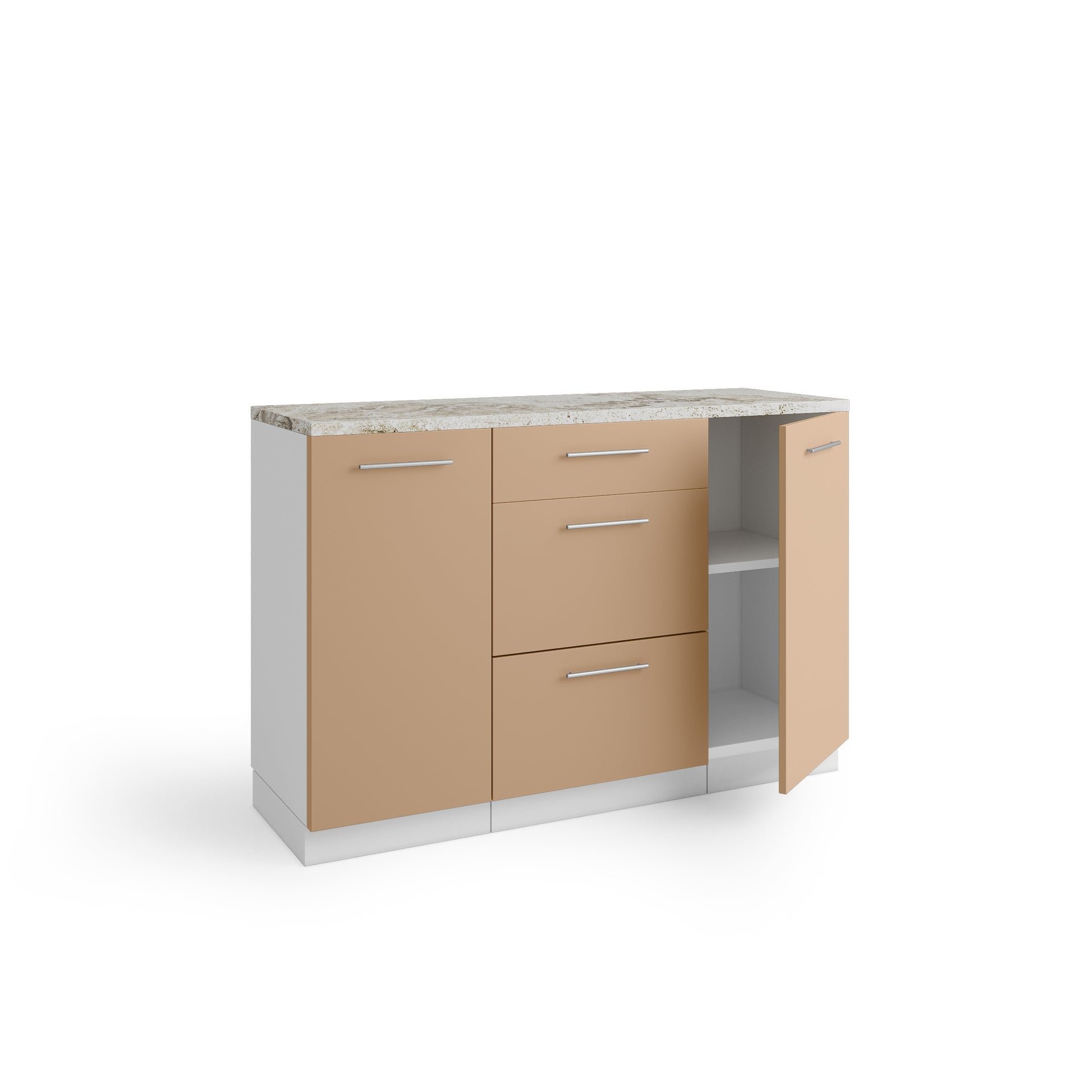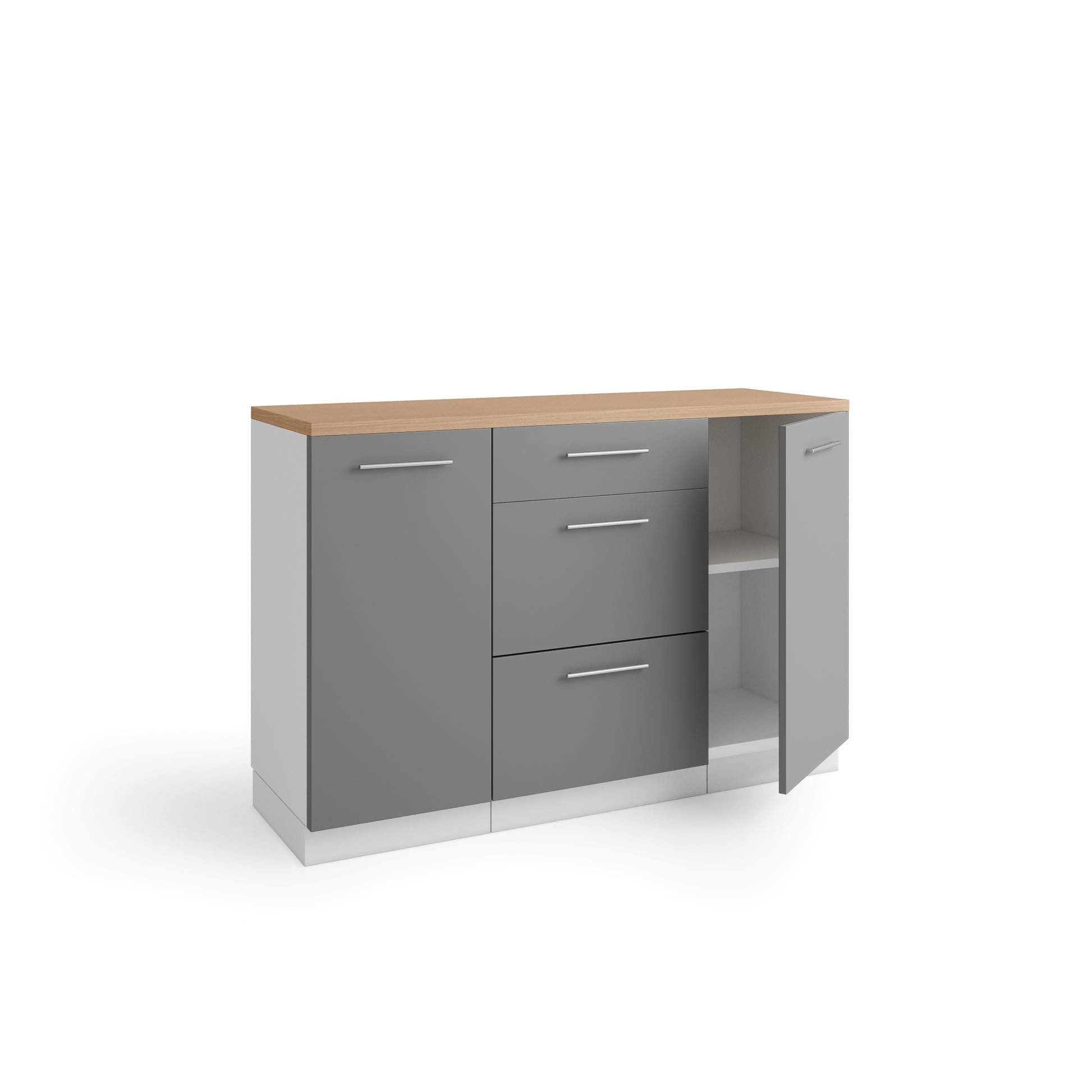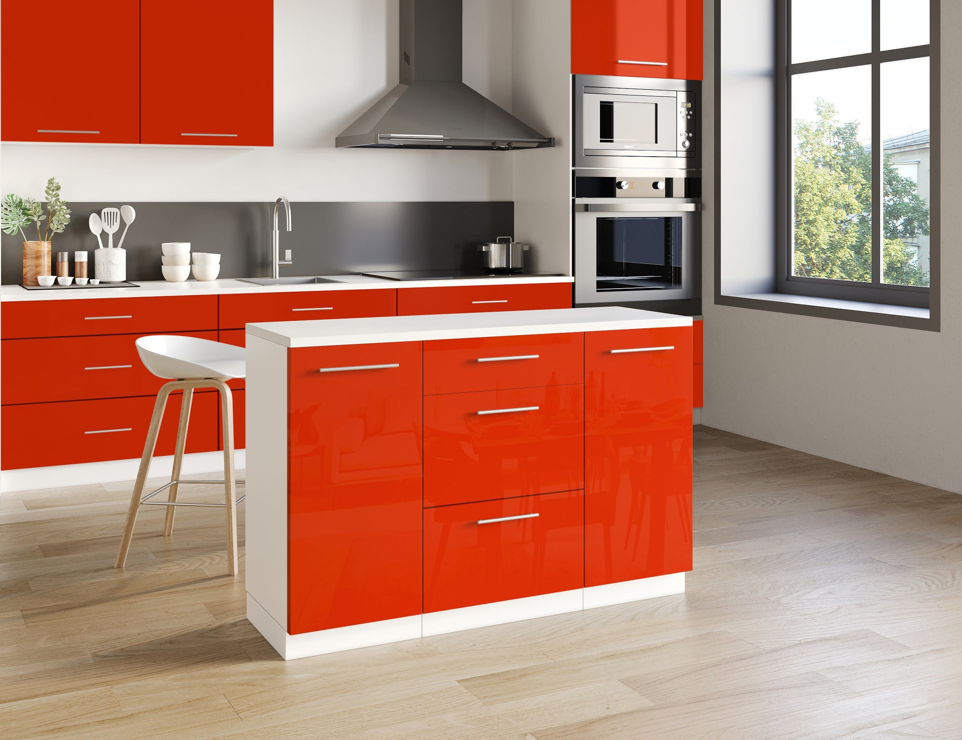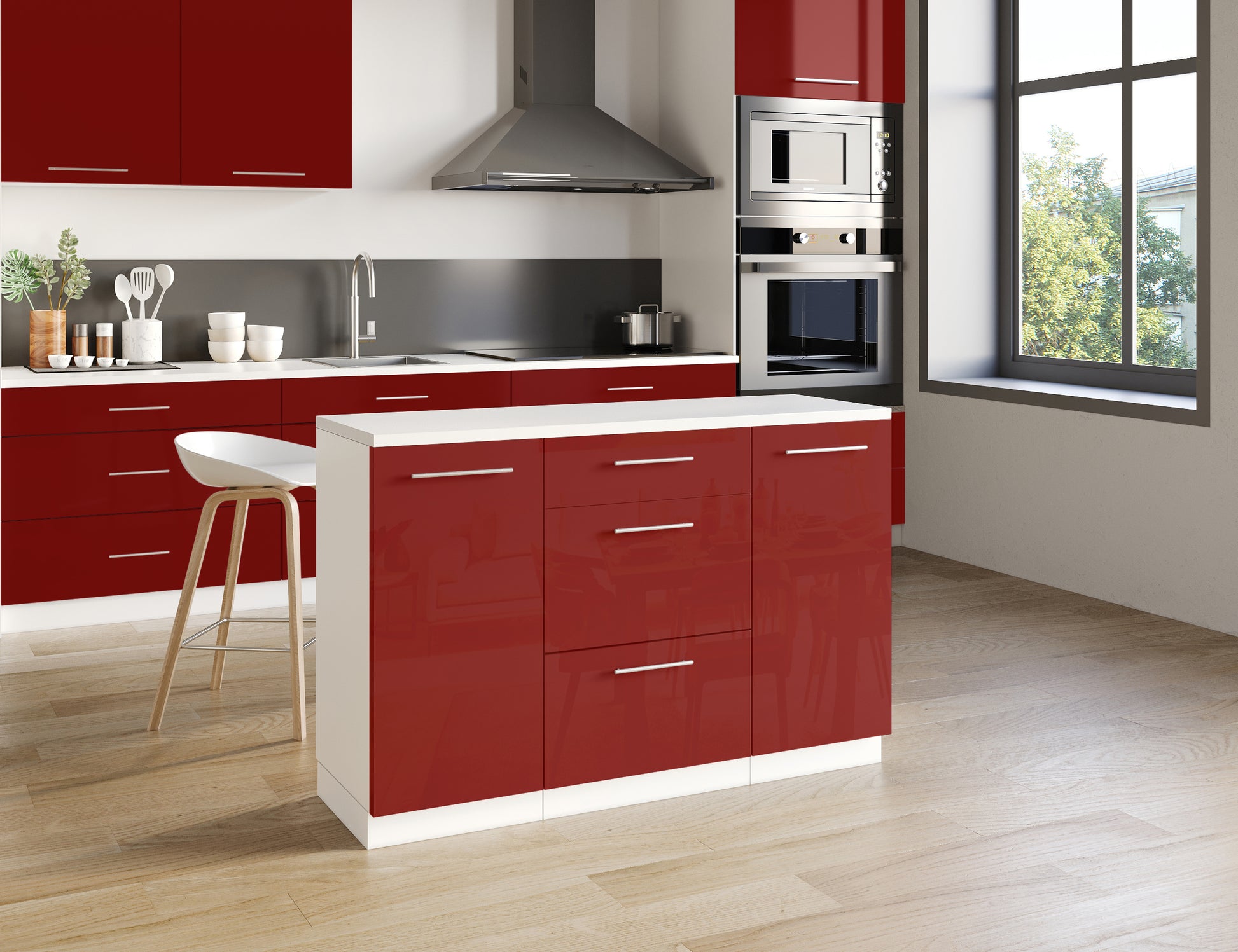 Notre îlot central de cuisine se compose de 3 meubles bas, adapté à une configuration d'îlot de 140x50 cm.